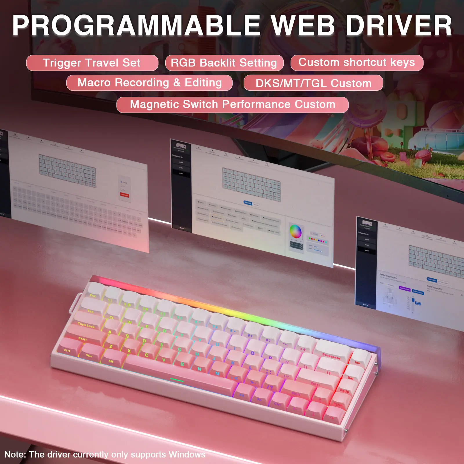 ·Programmable Web Driver: No need to install, the HERO 68HE driver allows users to remap key functions, set macros and hotkeys, adjust lighting modes and DIY lighting effects, and adjust the actuation point according to your typing habits or gaming needs for true customization and personalization. (This driver does not support MAC, only compatible with windows system)