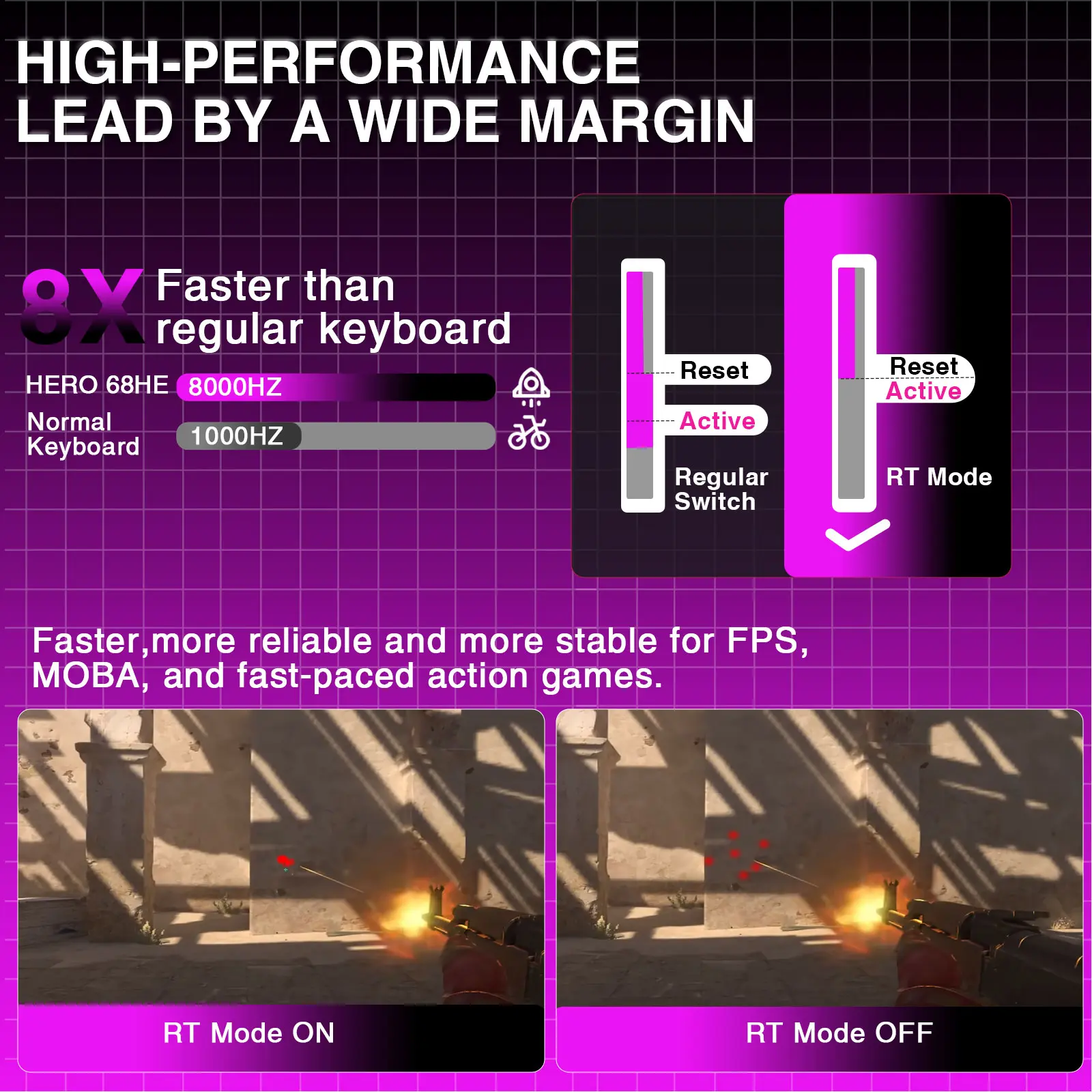 ·Rapid Trigger Mode & Ultimate Precision: This mechanical gaming keyboard features rapid trigger mode and industry-leading precision. With an adjustable RT range of 0.1-3.4mm and an accuracy of 0.01mm, every keystroke can be recorded instantly and reliably. This advanced feature makes it the perfect choice for gamers and professionals seeking the ultimate in control and efficiency
