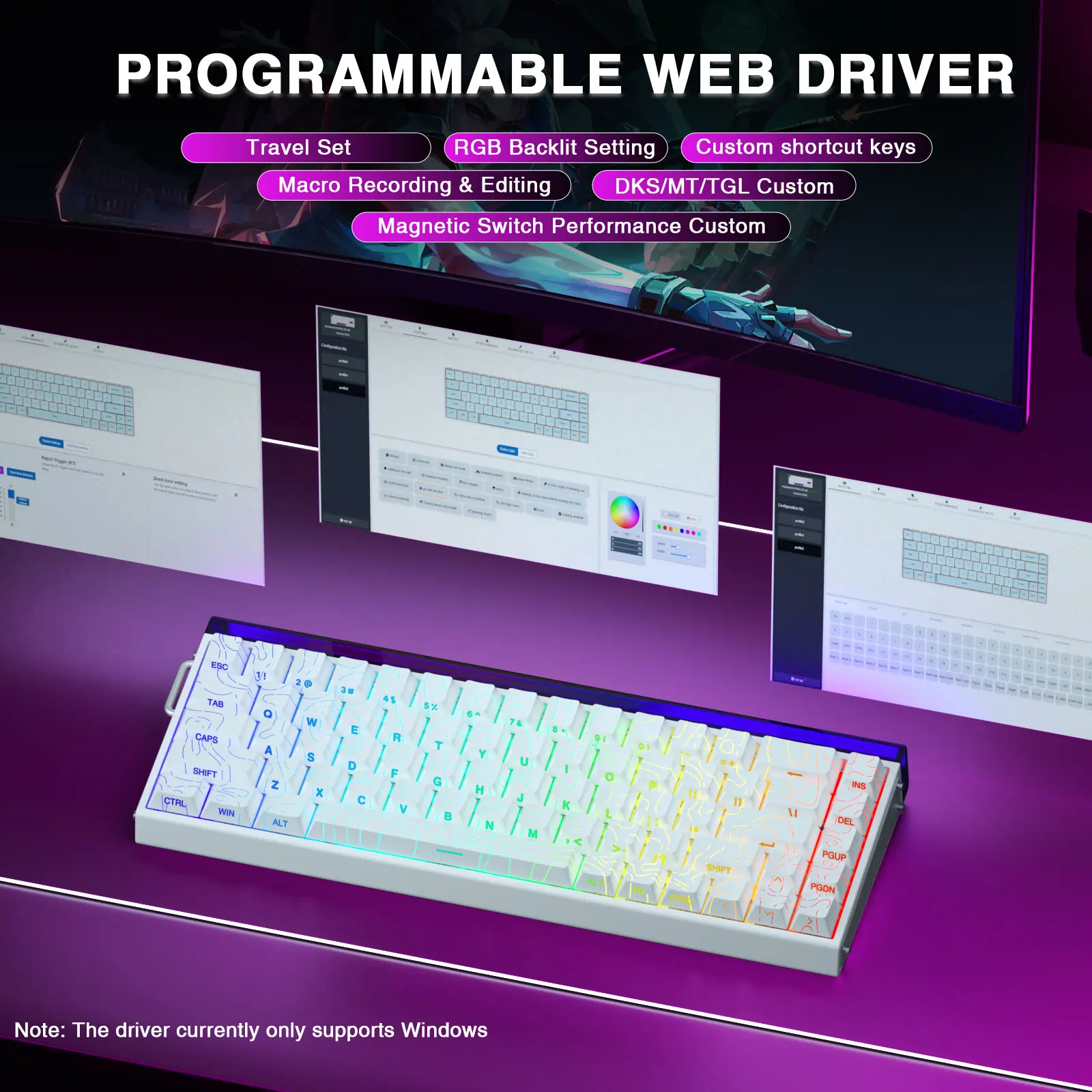 ·Programmable Web Driver: No need to install, the HERO 68HE driver allows users to remap key functions, set macros and hotkeys, adjust lighting modes and DIY lighting effects, and adjust the actuation point according to your typing habits or gaming needs for true customization and personalization. (This driver does not support MAC, only compatible with windows system)