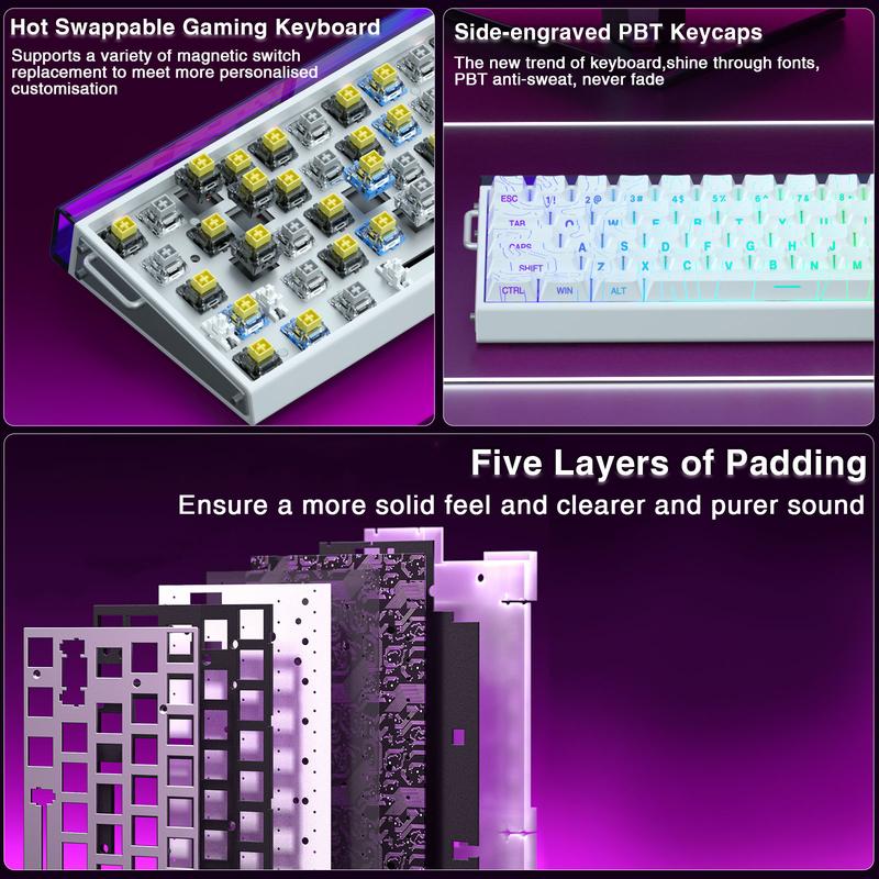 ·60% Wired Gaming Keyboard: No matter the outlook, the construction, or the function, this rapid trigger keyboard is definitely a professional gaming keyboard. This 68-key 60% layout compact keyboard can save more desktop space while retaining the necessary arrow keys for gaming. USB-C wired mode provides gamers with a more stable connection and greatly enhances the gaming experience.