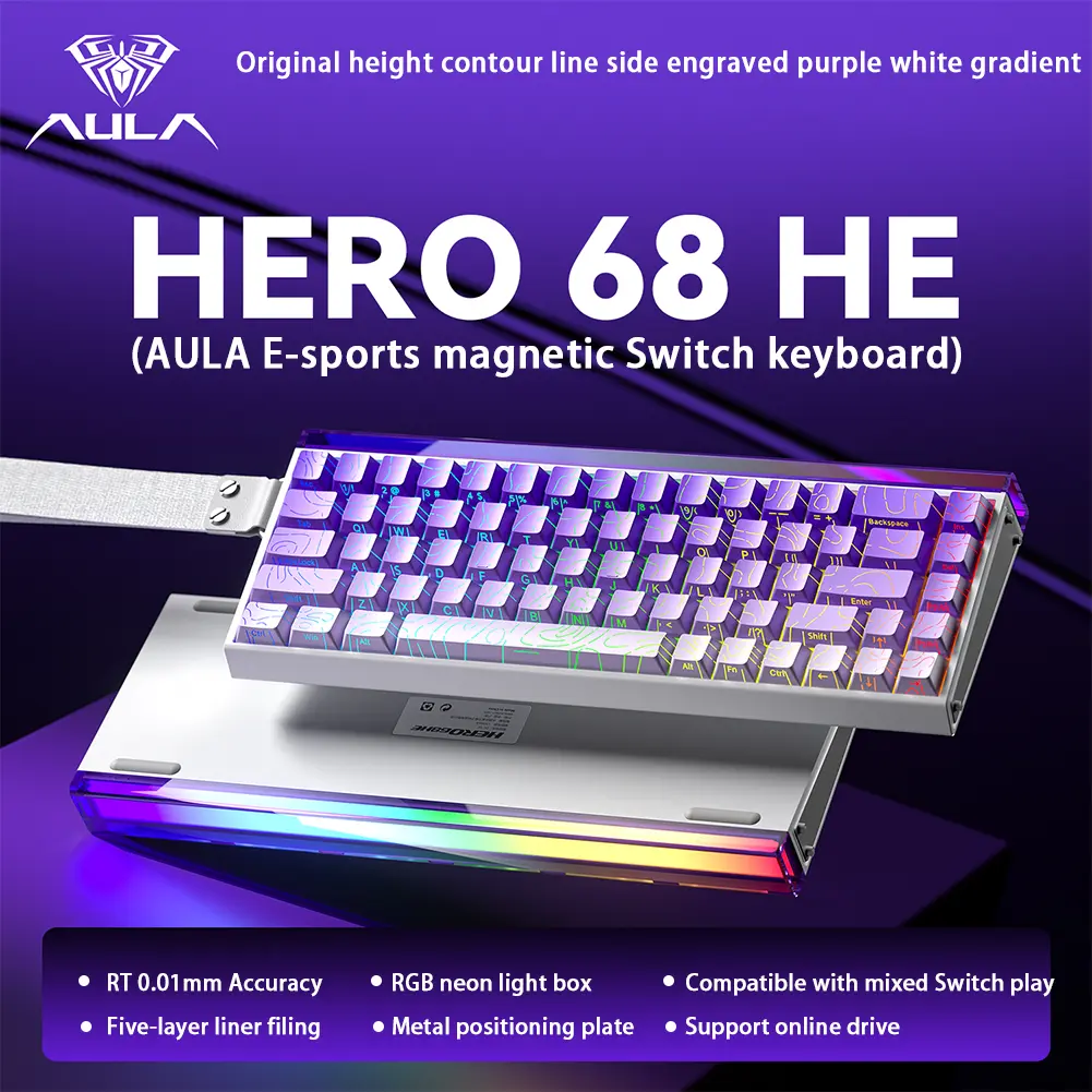 ·Hall Effect Magnetic Switch & Ultra-fast Response: Equipped with hall effect magnetic switches, the AULA HERO 68HE gaming keyboard has an ultra-fast 8K polling rate and ultra-low latency of 0.125ms to keep you ahead of the competition. Featuring premium construction and advanced magnetic switch technology, this hall effect keyboard ensures flexibility and superb response, perfect for FPS and other rhythm games