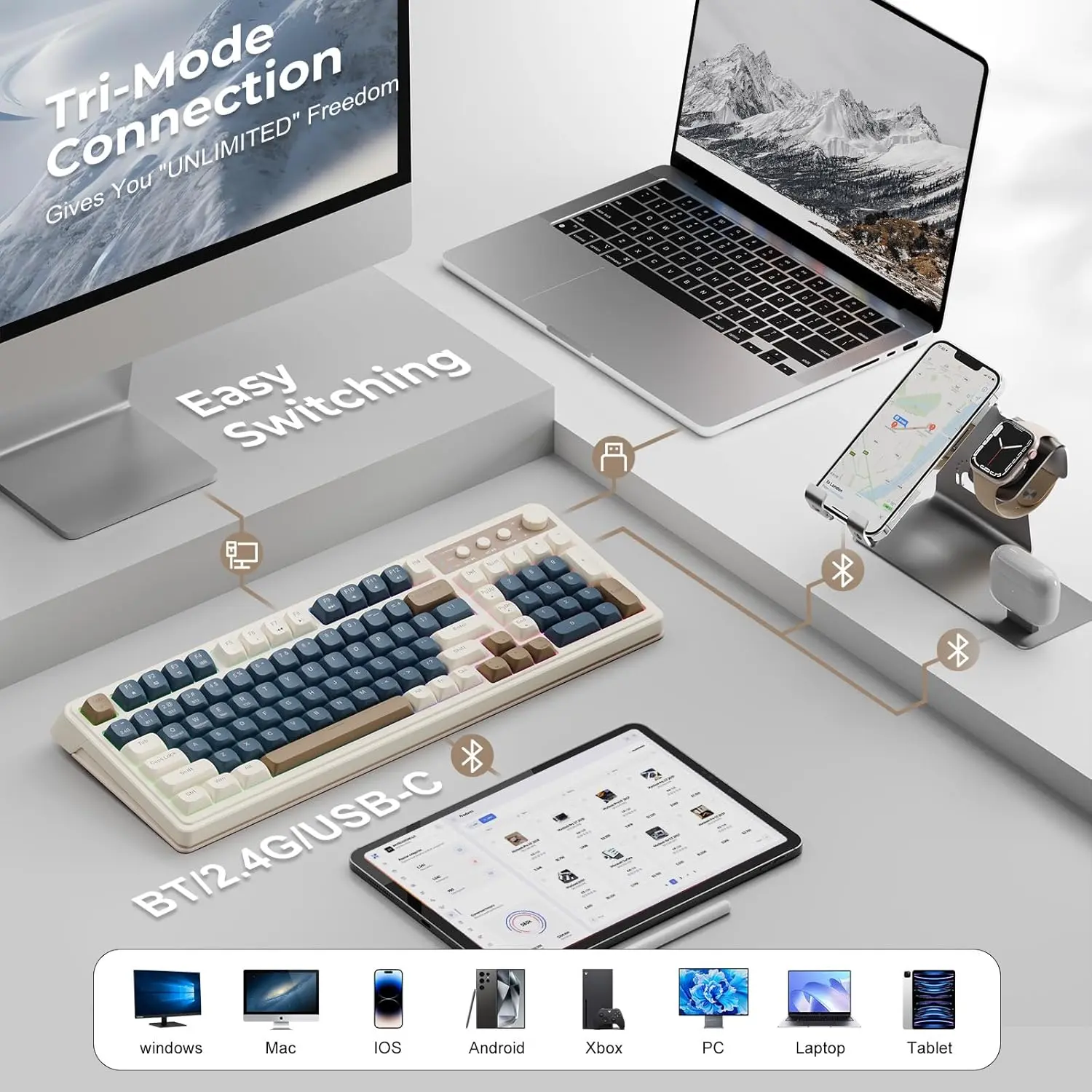 ·Multi-Device Connectivity: The AULA S99 allows you to connect up to 5 devices simultaneously. With Bluetooth 5.0, 2.4GHz wireless, and USB-C wired options, you can easily switch between devices using the FN key combination. Whether at home, in the office, or on the go, you will enjoy seamless connectivity.