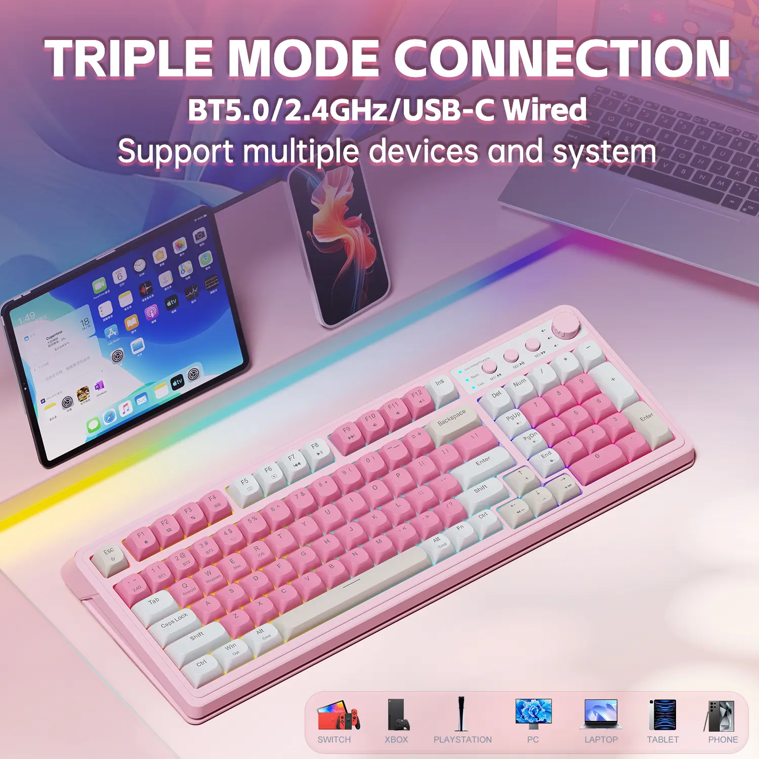 I love this purple gradient keyboard! It arrived faster than expected and packaged beautifully and securely. The backlight colors are vibrant and fun! 🤩 I love this and want to buy more colors now!