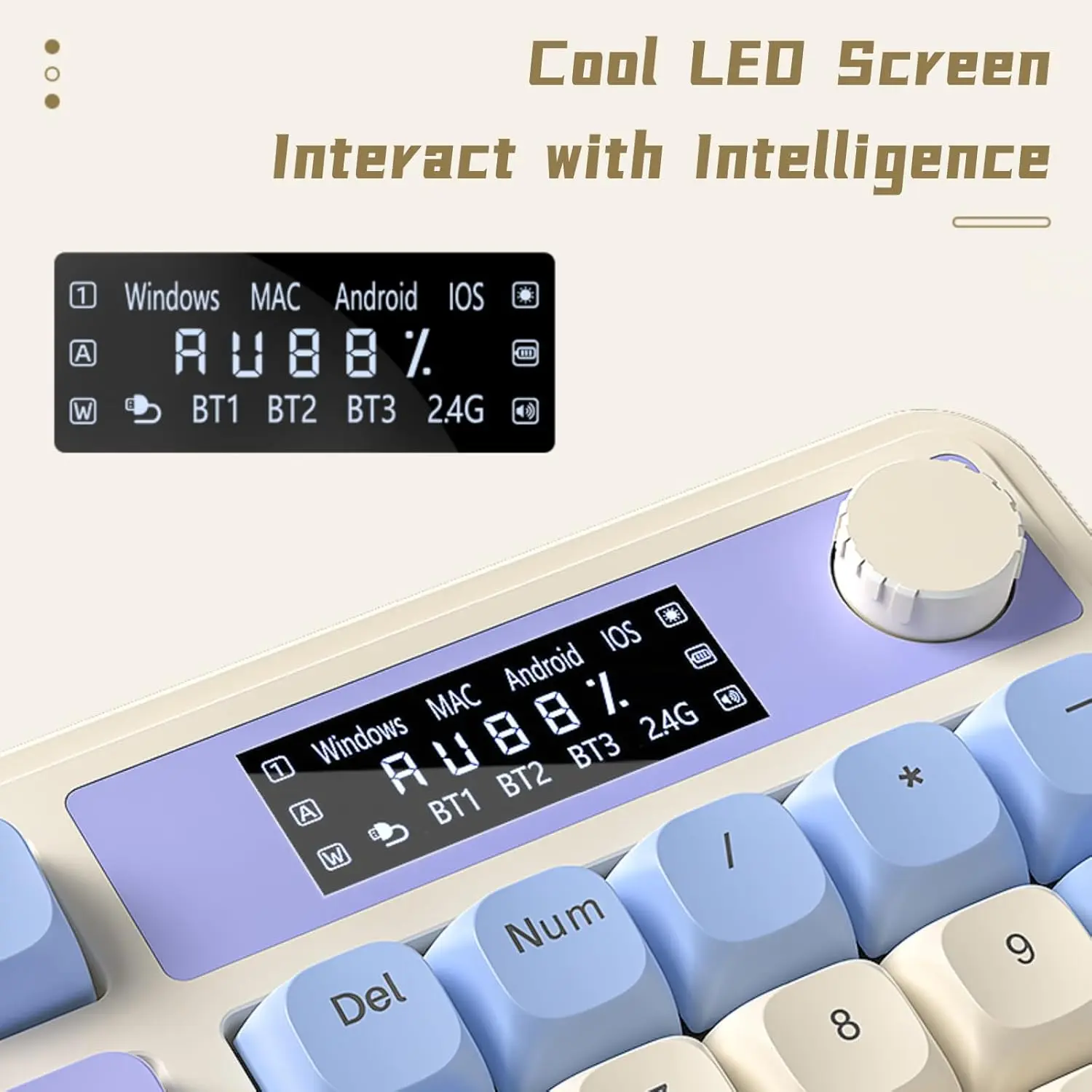 ·Smart Info-Island Screen: Gathering typewriter keyboard info, connection mode, battery level, typing status, unveiling everything you want to know, eliminating the need to go through complicated operations to access this information and unveiling everything you want to know (Uncustomizable screen)