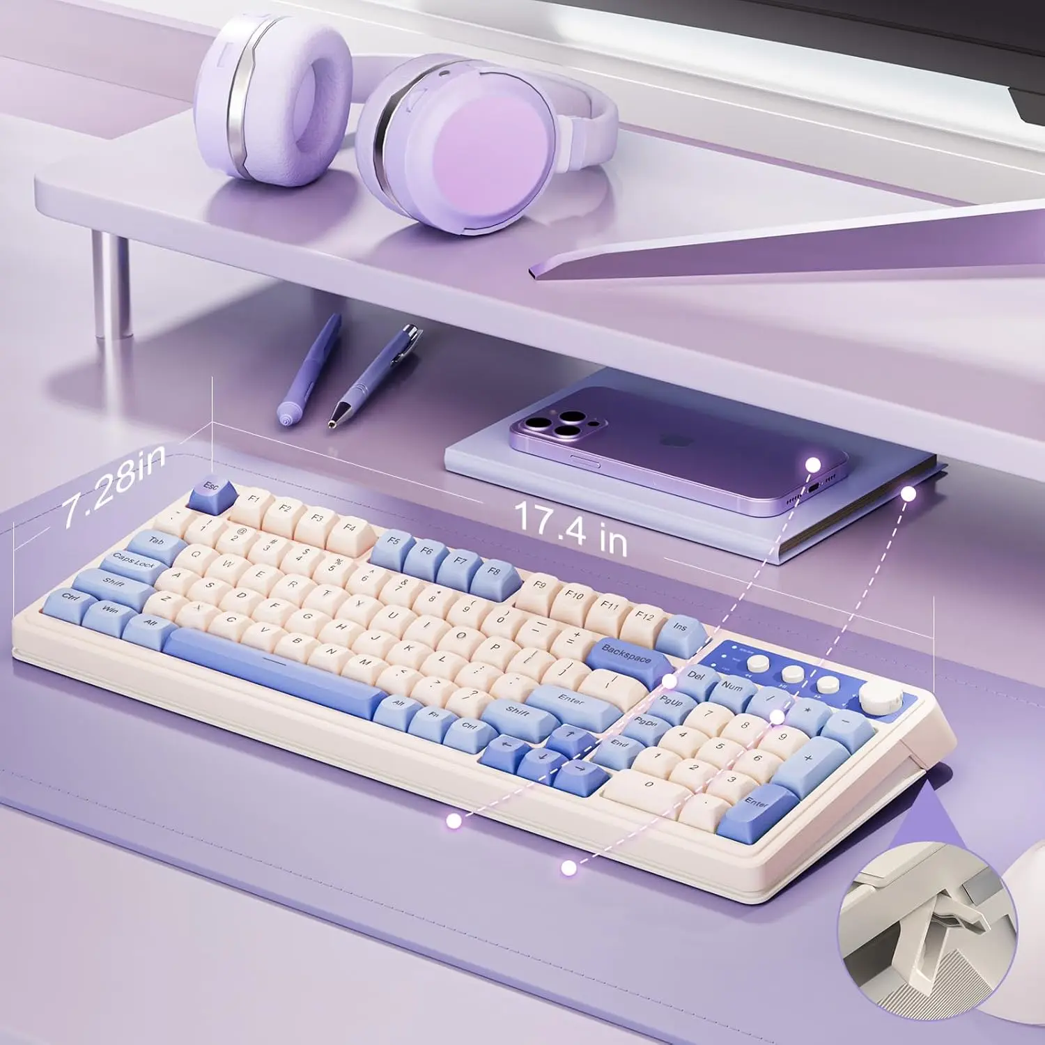 This keyboard is everything! I love the super creamy keys and the thick and heavy aluminum case. The set up is perfect as a 75% keyboard which I love! The colorway is super cute and you can’t go wrong with the astronaut and space theme.