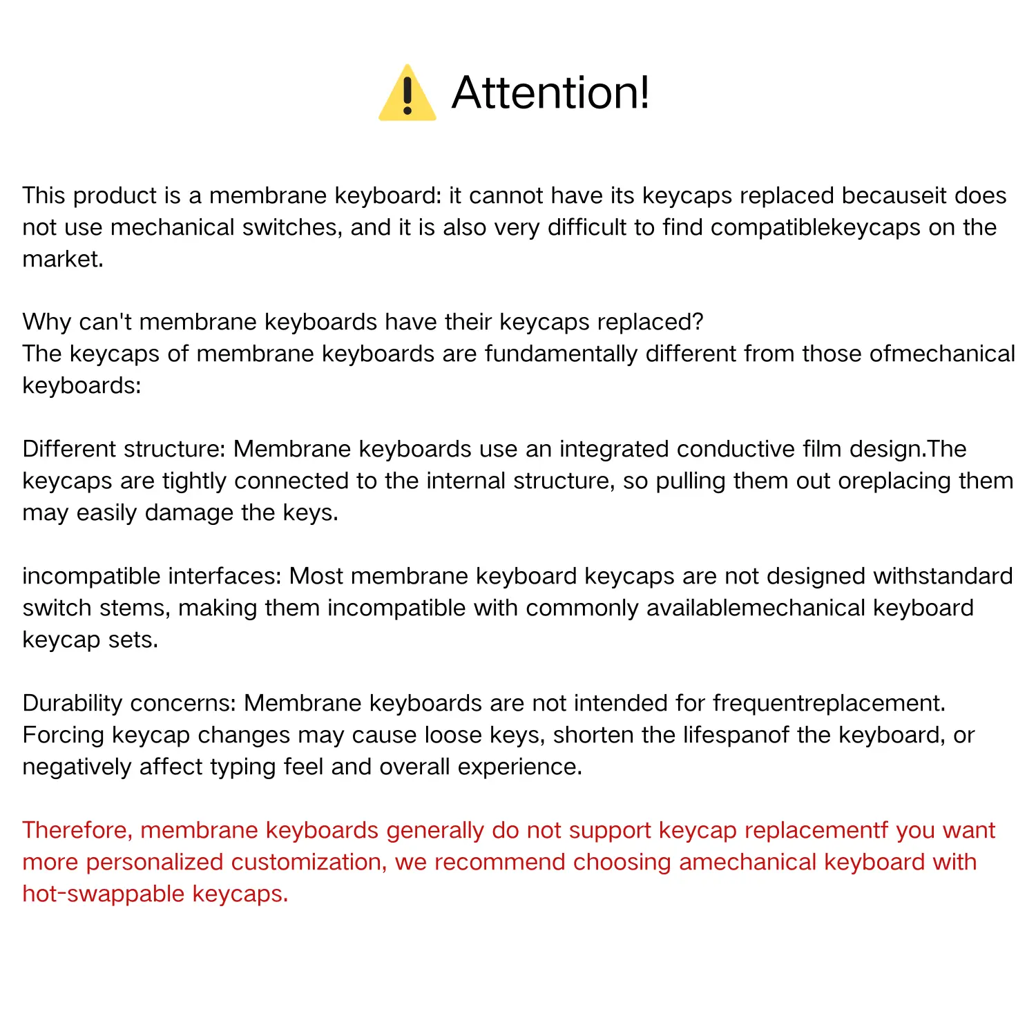 Note: [Keycaps & Switches NOT Replaceable]