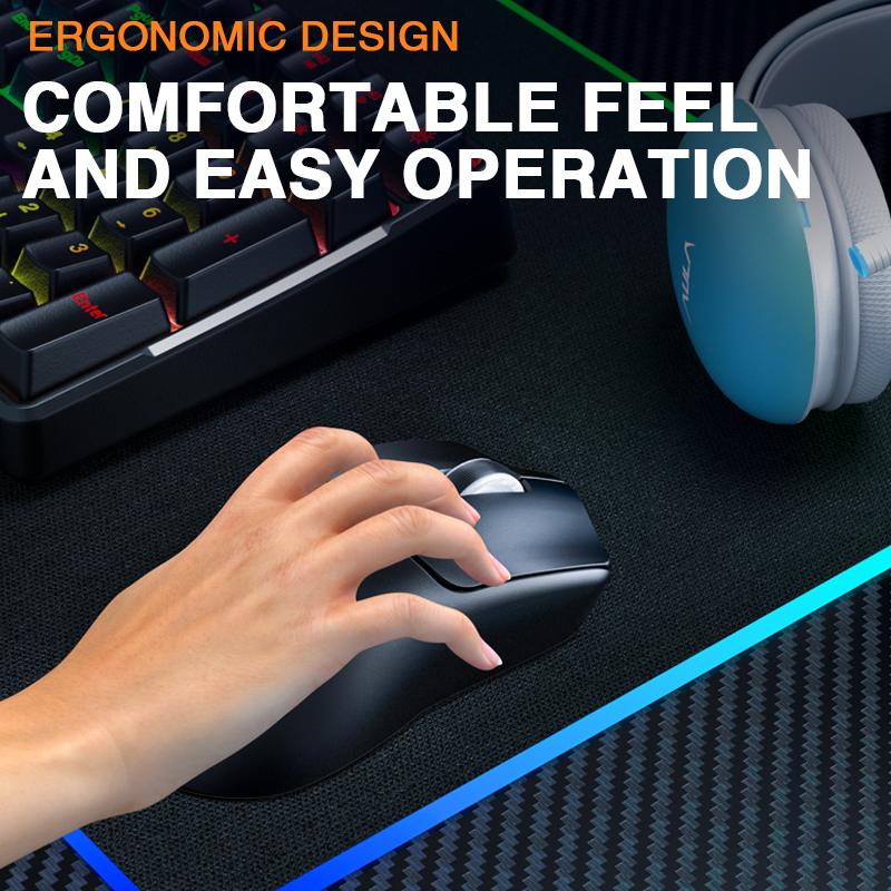 ·Ergonomic Design & Anti-Slip Stickers: The ergonomic mouse is designed for right-handed users, combined with 82g lightweight design, optimizes the weight and performance stability, reducing the fatigue and tension of the hand caused by long hours of work and gaming, and greatly improving the efficiency. Equipped with a non-slip stickers to prevent oil and sweat, you can hold the ergonomic wireless mouse more easily and freely