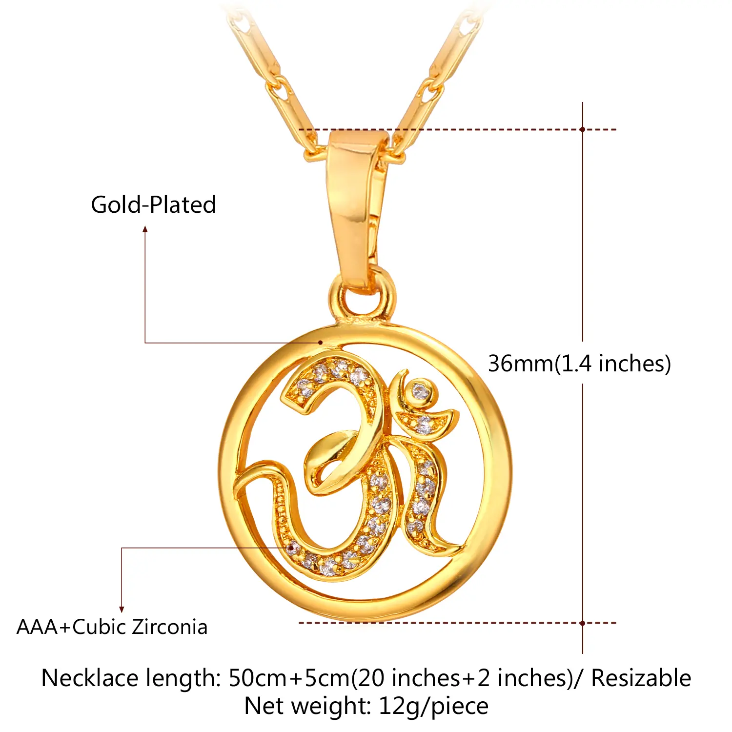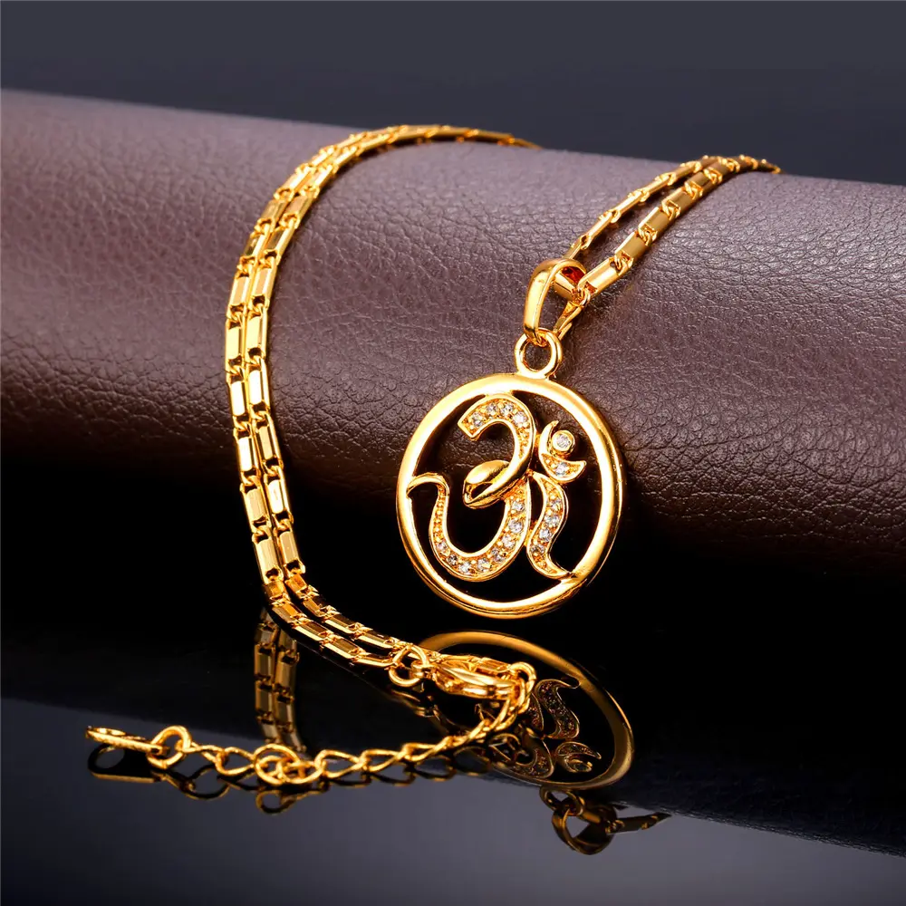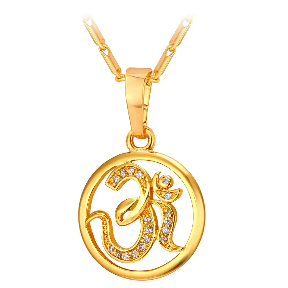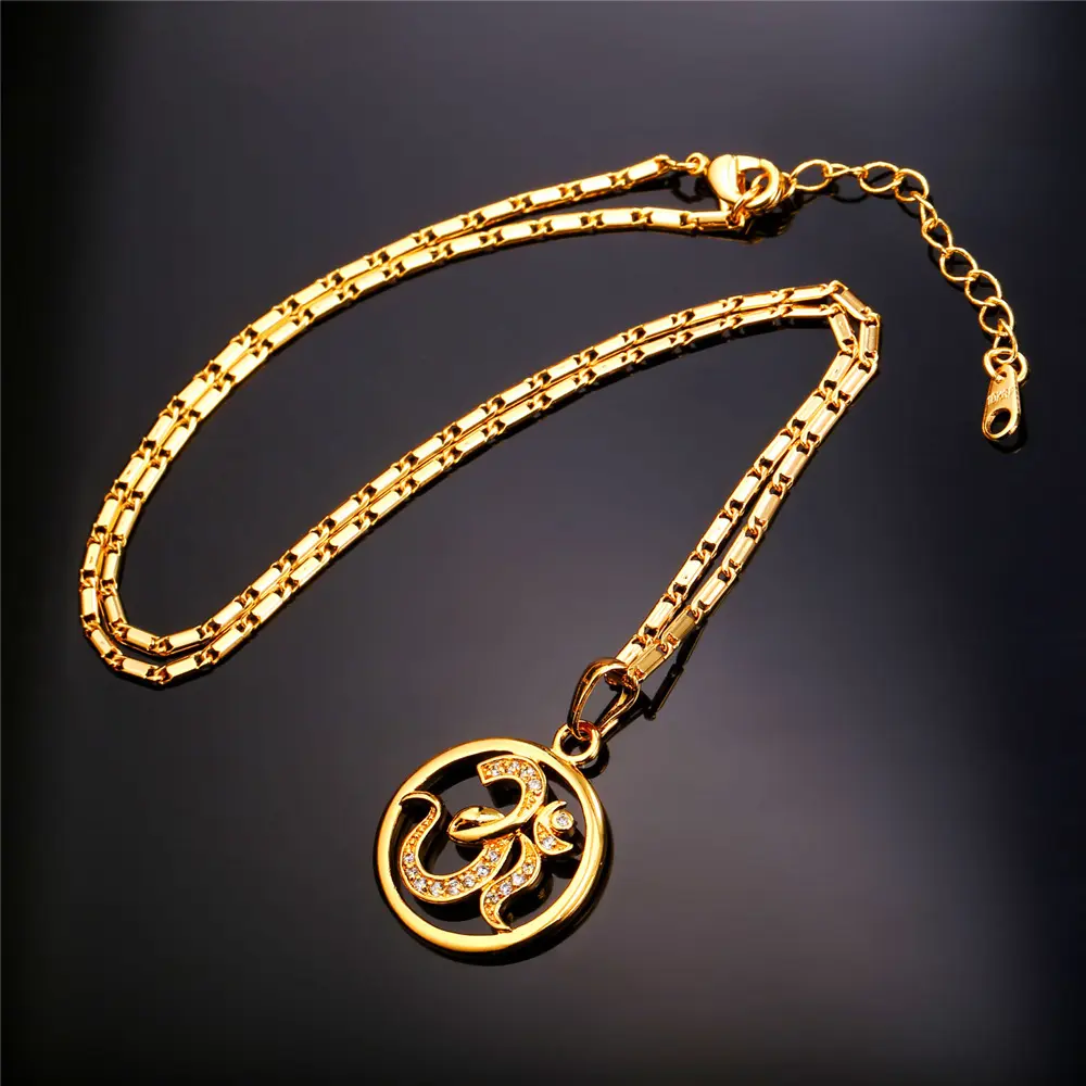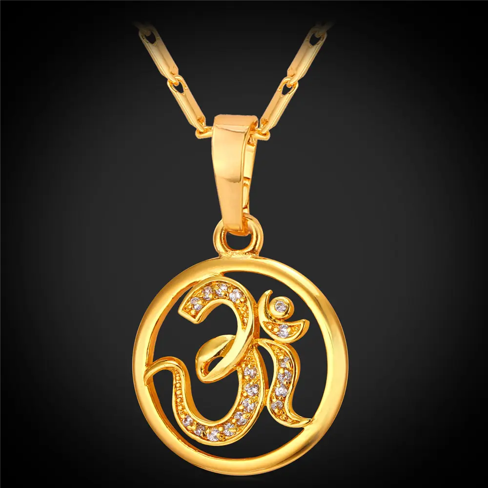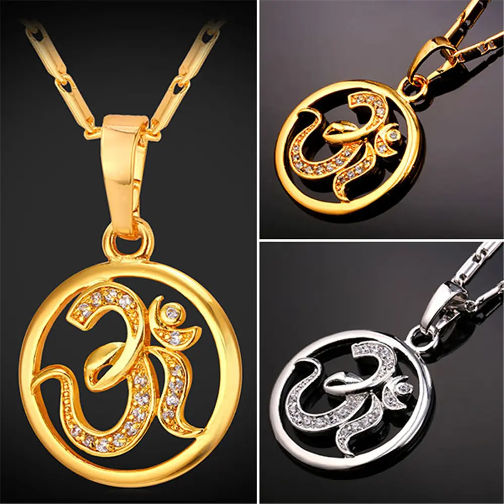 FindChic Yoga AUM OM Pendant Necklace Golden Bling CZ Necklace Inidian Hinduism Amulet Meditation Jewelry For Women MenFindChic Yoga AUM OM Pendant Necklace Golden Bling CZ Necklace Inidian Hinduism Amulet Meditation Jewelry For Women Men