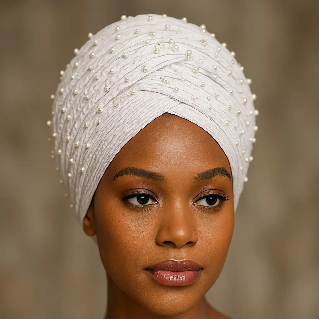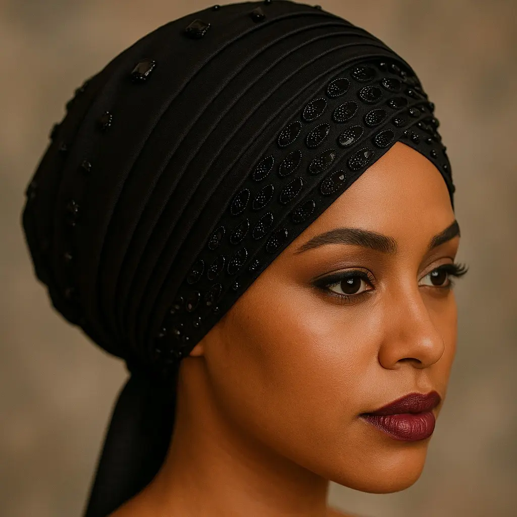 Auntie Ama's Custom Headpieces - Unique Design Headpiece with Decorative Elements for Special Uses - Luxurious Turban