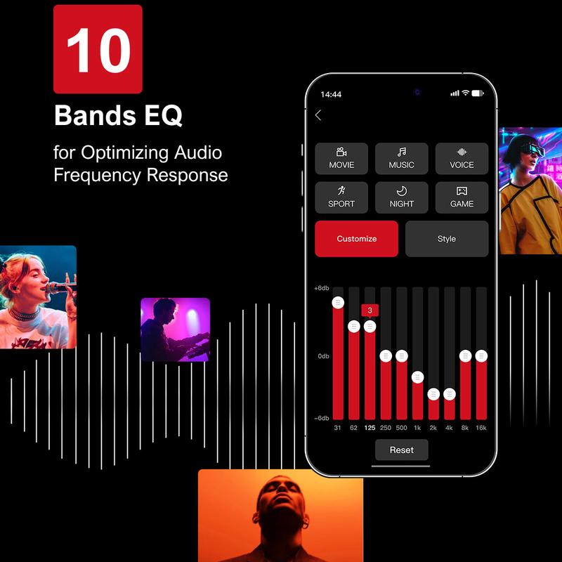 Control your sound effortlessly with the smart app, featuring 121 preset EQ matrices and a 10-band equalizer to tailor audio to your liking. Connect easily via Bluetooth 5.3 for wireless streaming or use the included optical and AUX cables for stable, interference-free sound. Multiple listening modes like Movie, Music, Voice, Sport, Game, and Night let you customize the vibe for any activity.