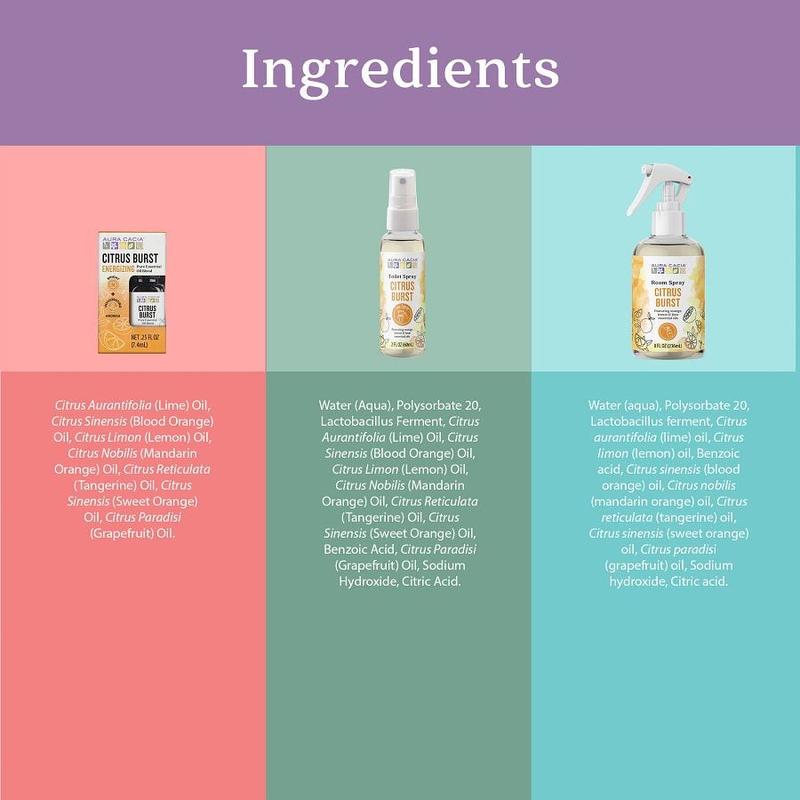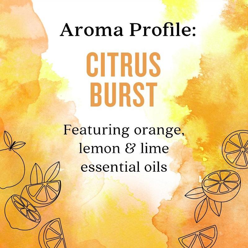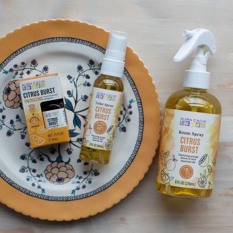 Citrus Burst Room Spray (8 fl oz), Citrus Burst Essential Oil Blend (0.25 fl oz), and Citrus Burst Toilet Spray (2 fl oz).