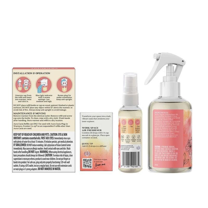 Aura Cacia Paradise Air Freshener Collection brings a light, botanical touch to everyday spaces with a coordinated assortment of home fragrance essentials. Each product features the same calming, citrusy aroma crafted from 100% pure essential oils, offering an easy way to refresh rooms, create a relaxing atmosphere, or elevate simple routines. This collection showcases versatile formats for scented home care, ranging from plug-in diffusion to quick sprays and bathroom use.