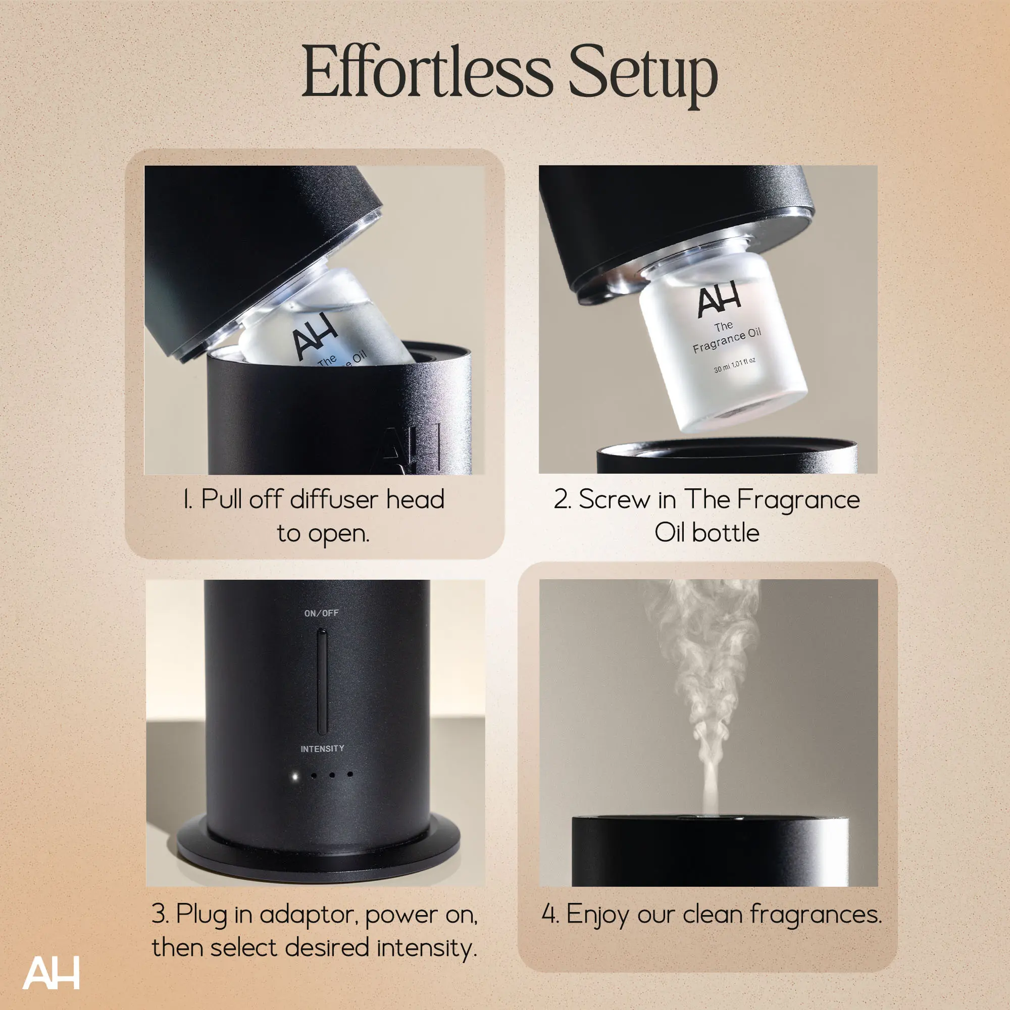 The diffuser is amazing. It disburses the scent silently and quickly. I highly recommend it!