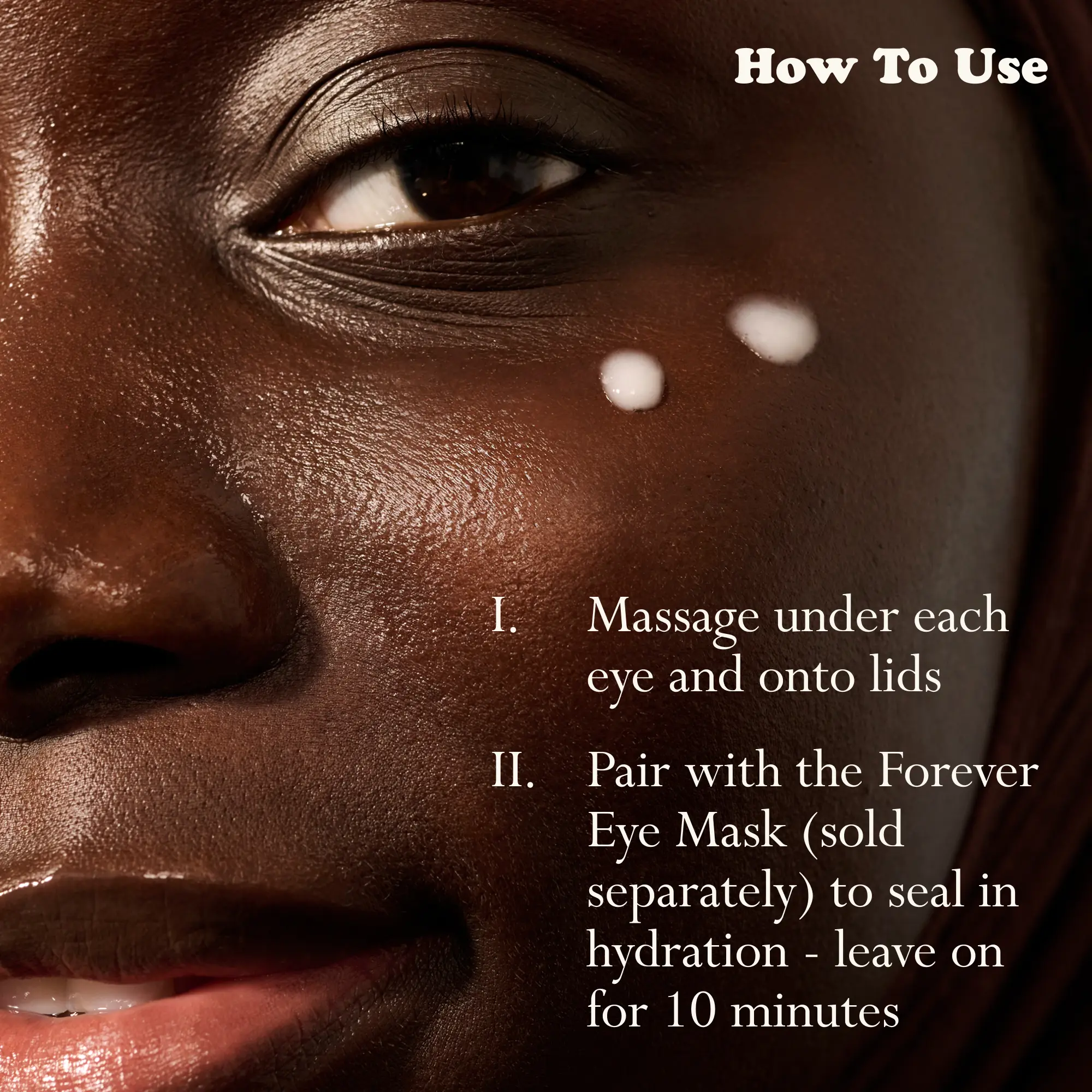 Pairs well with the eye masks. Lightweight texture. Does not exacerbate or cause milia. Like all eye treatment products, it’s tiny.