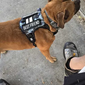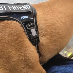 This is fantastic!! We love these harness!! We joined the live and they were very helpful on what size I should get by Lola’s weight! Which is a medium and it fits perfect!!the attached Velcro my best friend is adorable and they have several other ones you can change out!! Highly recommend!!