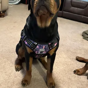 I love this dog denim harness. Well made. Good quality material. Very sturdy. My pit bull loves it. Ahe want to show it off all the time. She so sassy. We got the airtag collar to match. I will be buying for of these in different colors.
