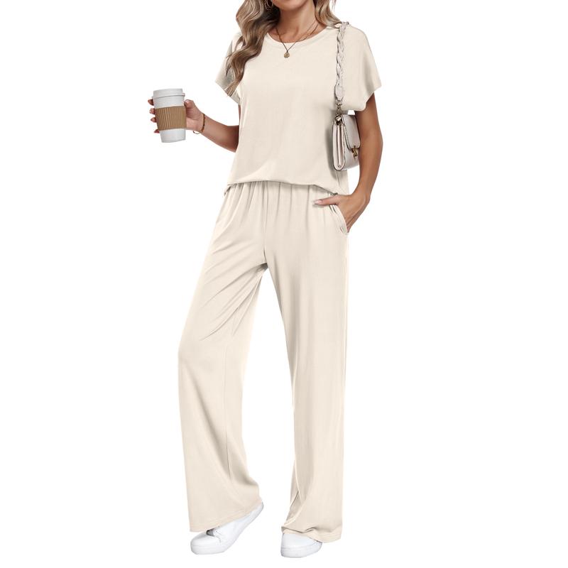 Batwing Short Sleeve: Sets for women clothing two piece with batwing short sleeve, suitable for outdoor, workout, daily wear, streetwear, vacation, beach etc