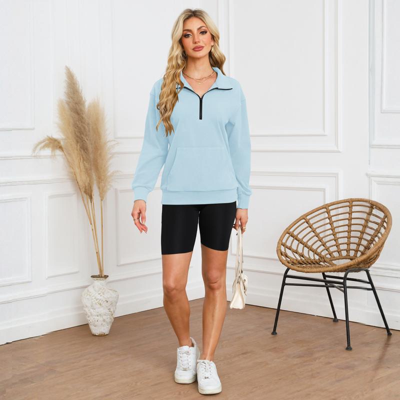 I absolutely love my AUSELILY Women's Half Zip Sweatshirt Hoodless Hoodies Stand Collar. They are so soft and very comfortable. Finally the description matches the product. I will be ordering more.