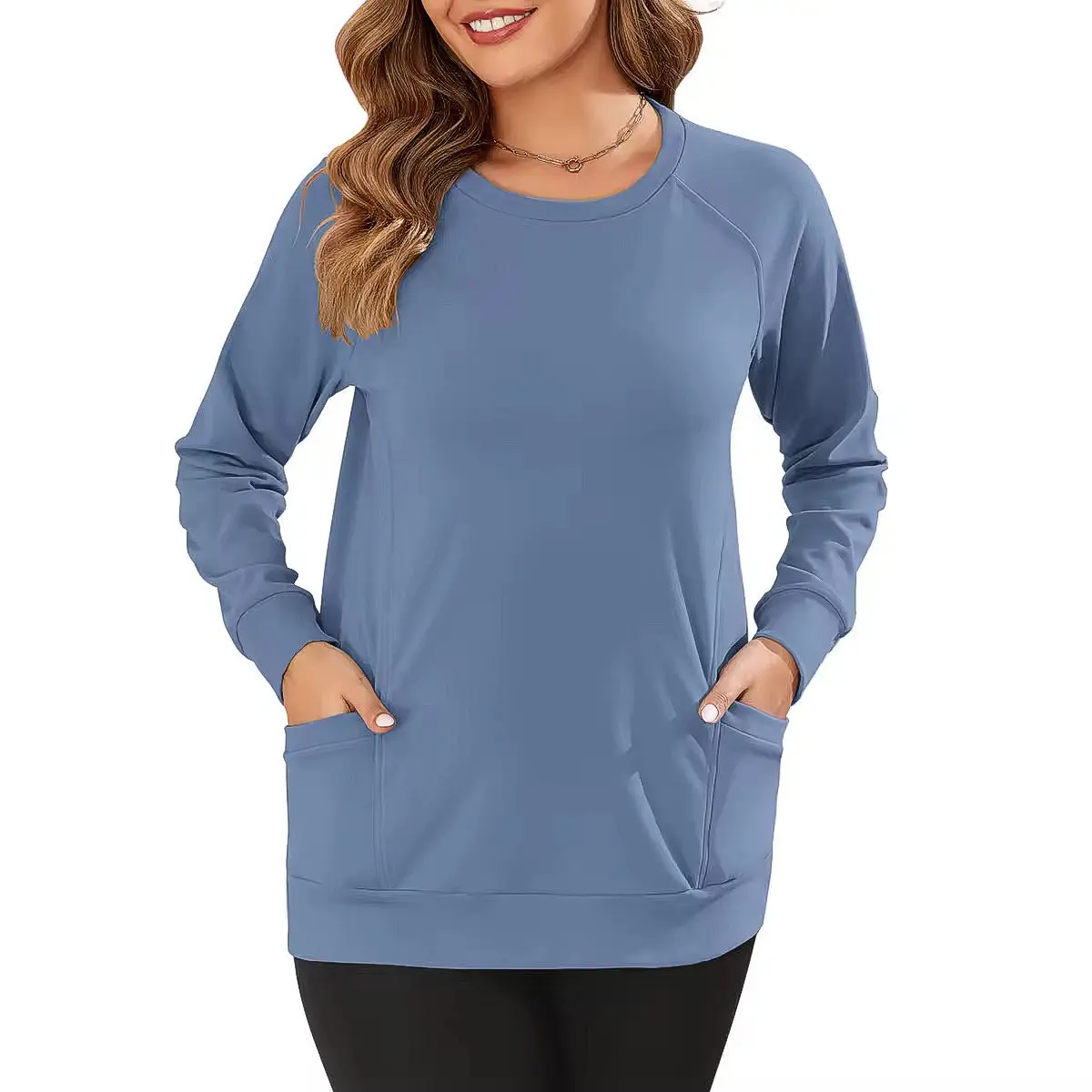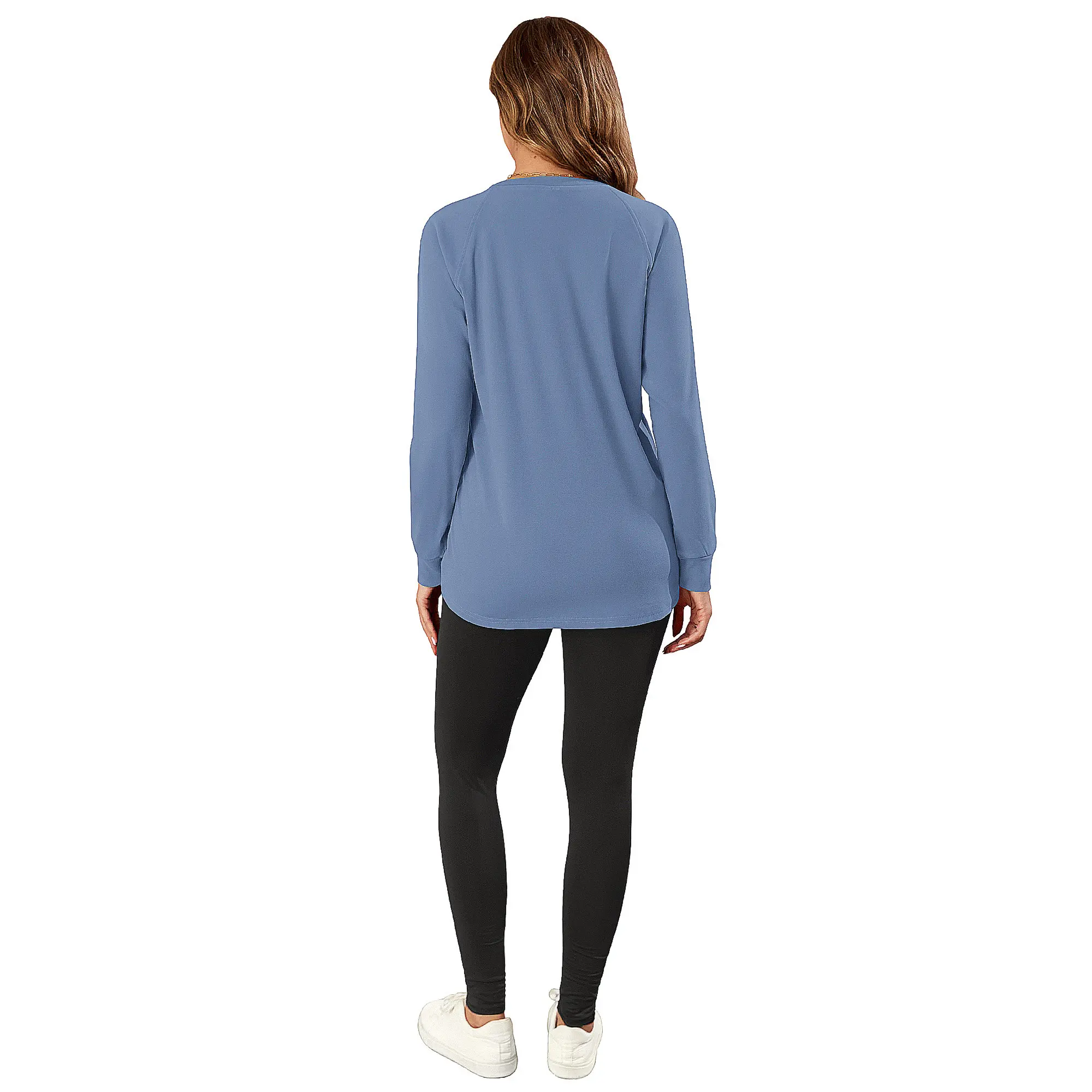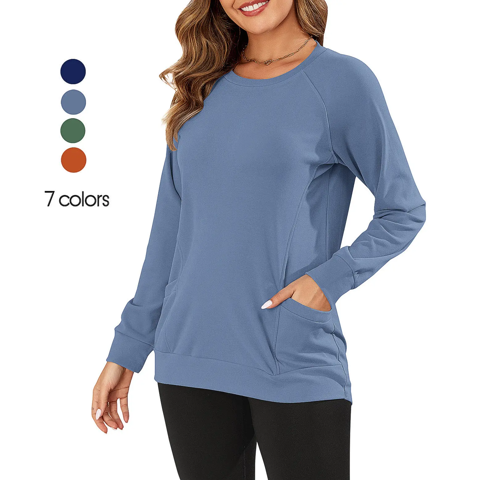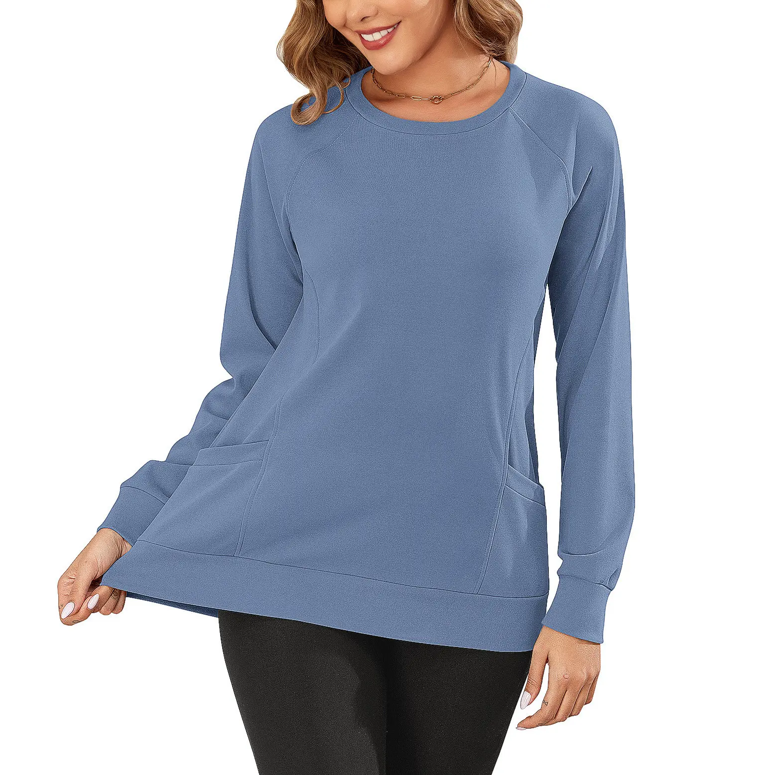 5. AUSELILY Women's Long-Sleeve Lightweight Sweatshirt with Side Pockets Womenswear Tops Extra Length Pullover