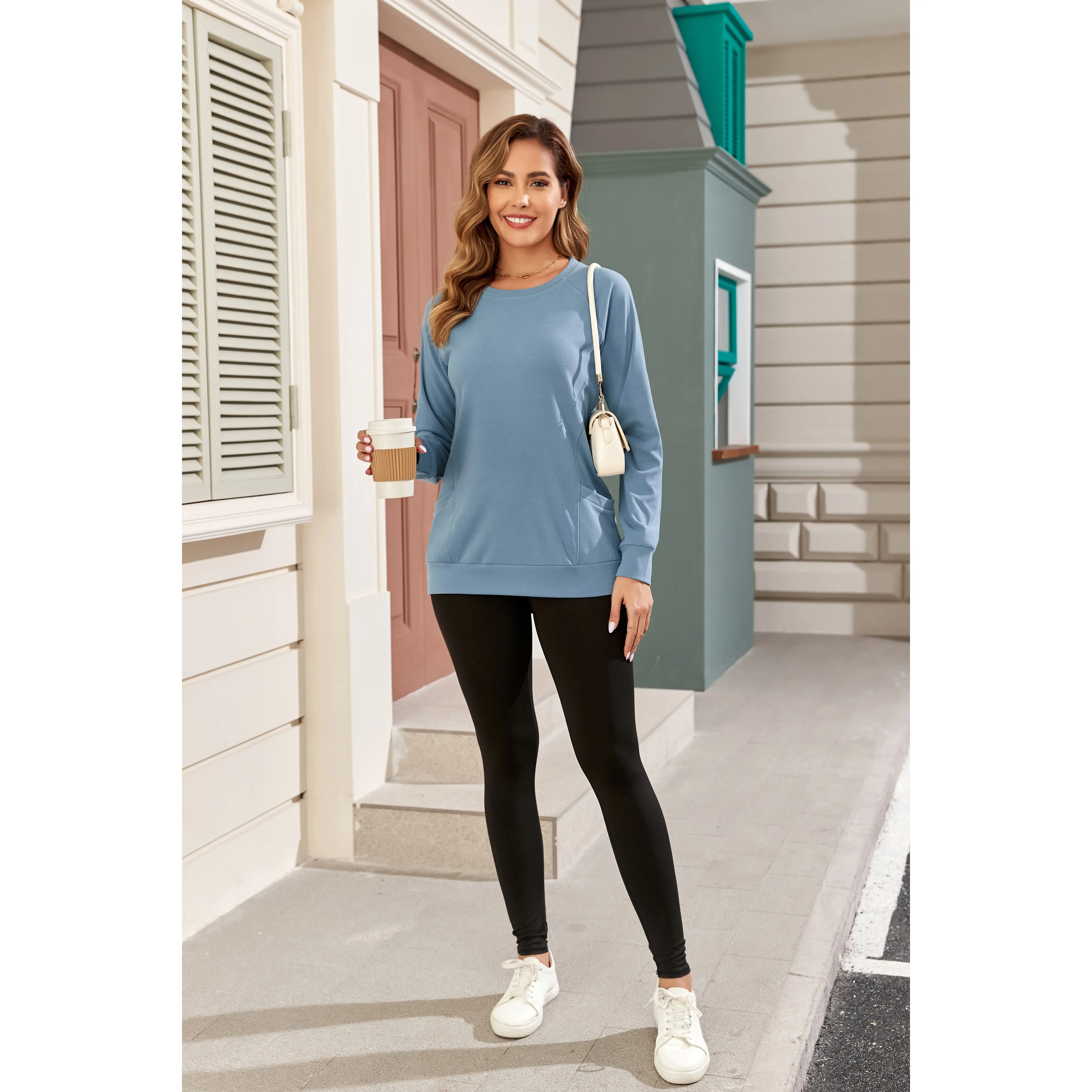 Perfect buttery soft lightweight sweatshirt! @AUSELILY  #sweatshirt #outfitideas  #casualoutfits #longsleeveshirt  legging outfits  #CapCut