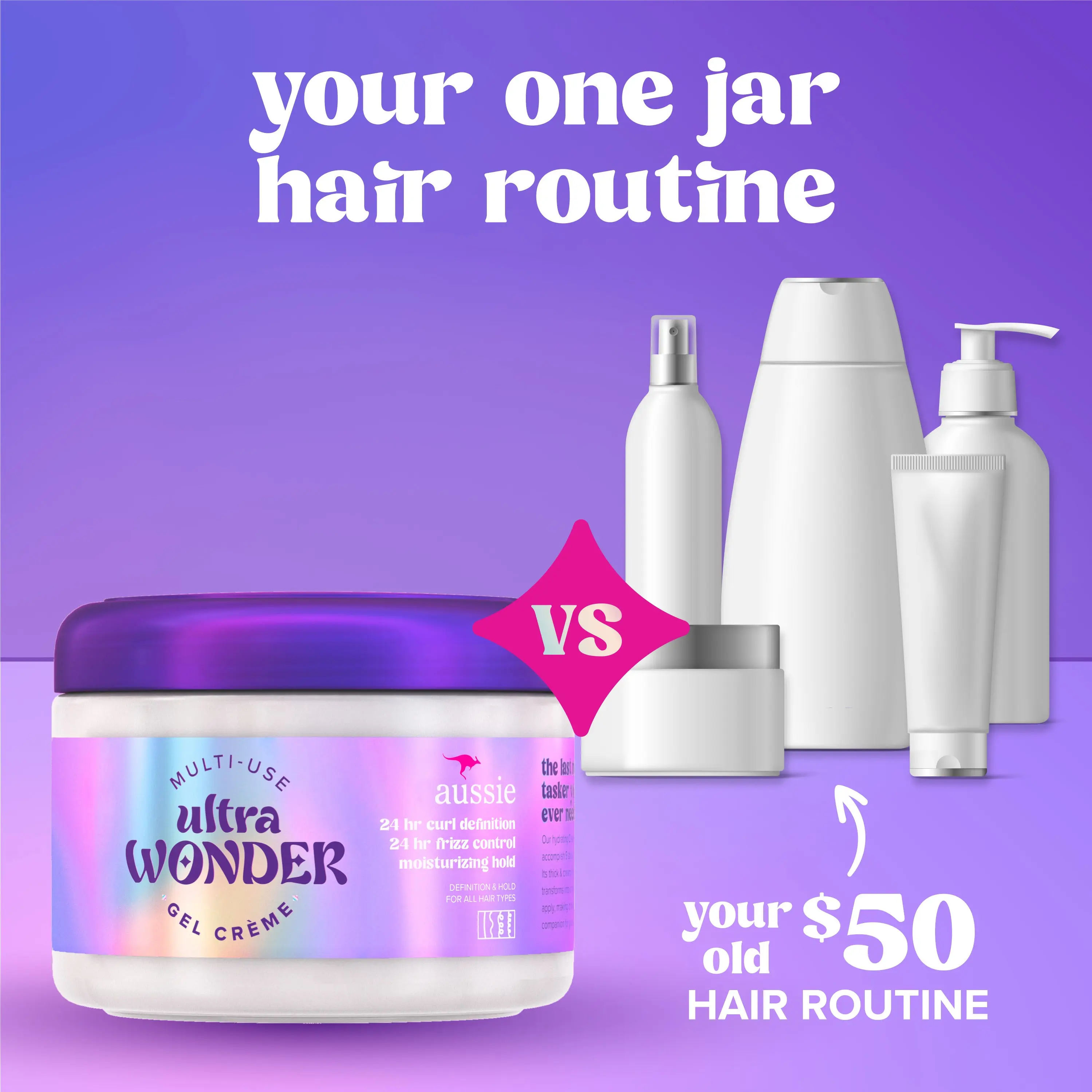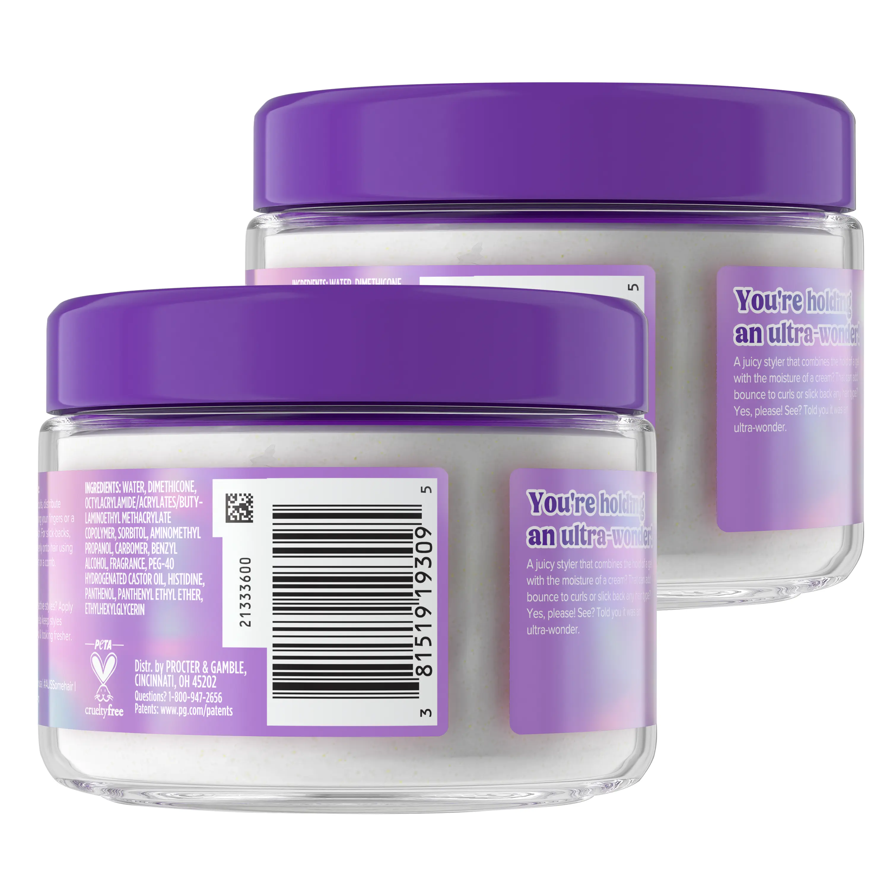 Aussie Ultra Wonder Gel Crème Moisturizing Hold Styler, with Amino Acids, for All Hair Types and Curls, 10.1 Fl Oz (2 pack)