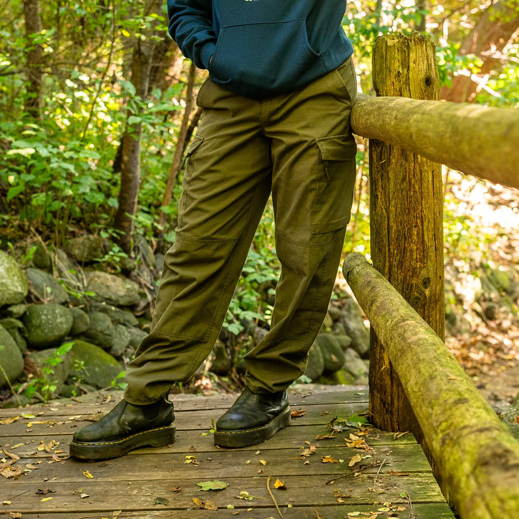Produced in the iconic Austrian RAL 7013 colorway, they make for perfect casual wear. Large and sturdy belt loops help accommodate concealed carry. Roomy zip-up cargo pockets, one on each leg, provide out-of-the-way storage for whatever you may need throughout the day. There are smaller velcro pockets inside the cargo pockets, designed to carry bandages and other small pieces of kit. They also come with an easy button-up waist and zip-up fly.