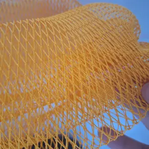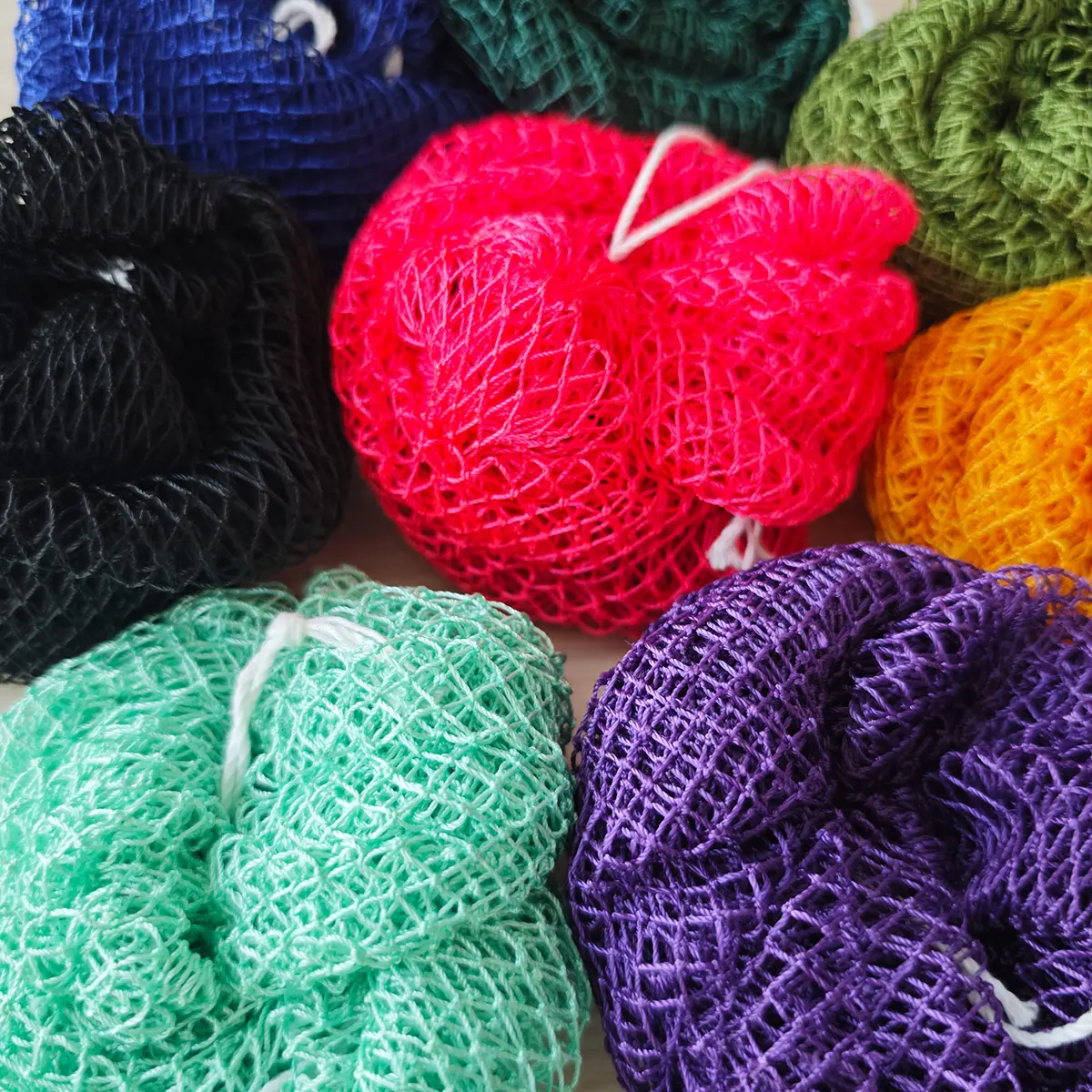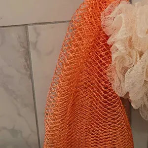 Not the fake straight mesh, like a bath "puff" this has knots and lots of bounce. I got pink and orange the pink I got is very almost neon pink and sthe orange has a slight brown hue to it.