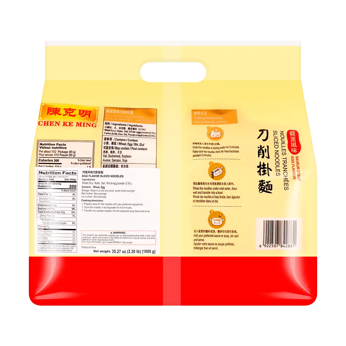 KM Egg Flavor Knife-Cut Noodles 1000g - Authentic Chinese Style
