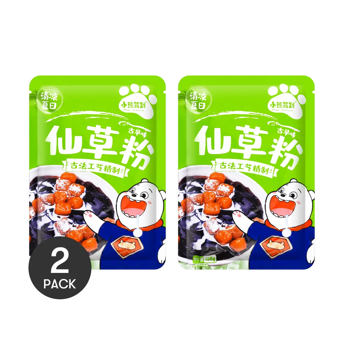 2 Pack Grass Jelly Powder (Xian Cao Fen) - Authentic Black Herbal Jelly Mix for Hot Pot & Desserts, 100g Each