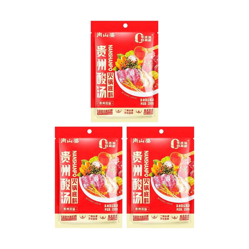 NANSHANPO Guizhou Sour Soup Hot Pot Base - Authentic 3-5 Servings (250g x 3 Pack) | Zero Preservatives, Rich Flavor for Hot Pot, Noodles, Rice Noodles