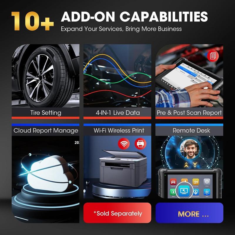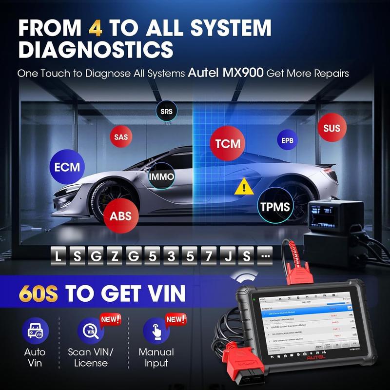 ·From Autel MX900 you’ll have more add-on features that you won't see in MK808BT Pro even though they are in same-price-range: ➤Wi-Fi Print (print test report out wirelessly anytime) ➤Pre&Post Scan (prevent unnecessary repairs; reduce risk) ➤Scan VIN/License (pull VIN info. from scanning a license plate/barcode as higher-level Autel scanners) ➤Work with optional MV108S (visual inspection in hard-to-reach areas). Effortless as smart AI; get hard work done with ease.