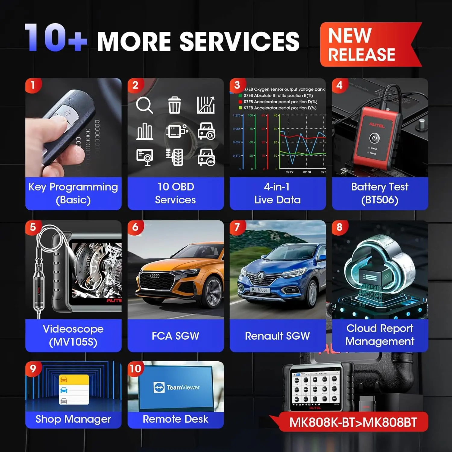 ·D: Autel New Version, Wider Coverage: 2026 Autel new version, MK808K-BT bidirectional scan tool combines all advantages of MK808 & MS906 series, featuring wider model coverage, higher software updating frequency, newer car coverage (1996-2026), mainstream models and US top-selling cars. Easily handle 99% of car repairs.