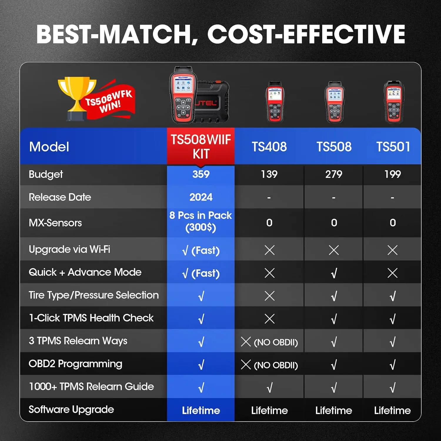 ·Lifetime Software Renewal Included: you won't have to pay for any additional software upgrades or renewals over the lifetime of Autel MaxiTPMS TS508WIFI KIT. You'll always have access to the latest features, bug corrections, and expanded car coverage.