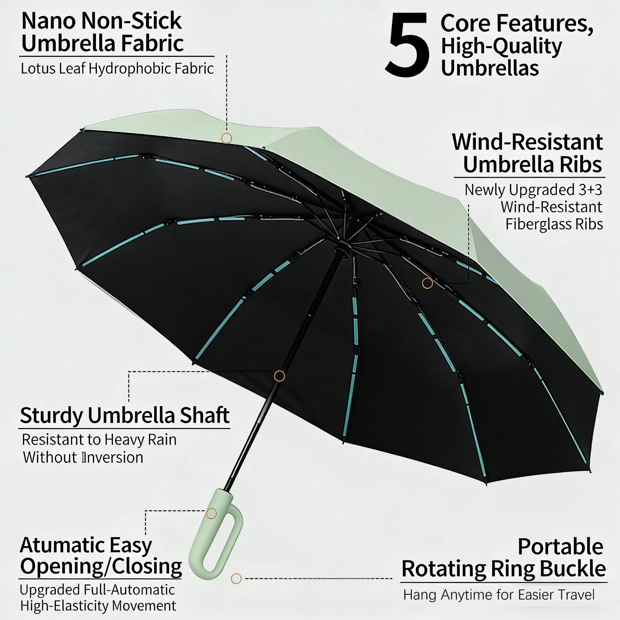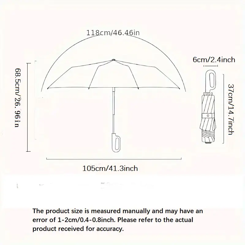This came right in time for these VA April showers! Just as described and I love the sleek look! I’m so glad I got this product get yours! I’ve had the same umbrella for over 12 years so it was more than time for an upgrade! Love how the handle opens to hang keys or wallet!