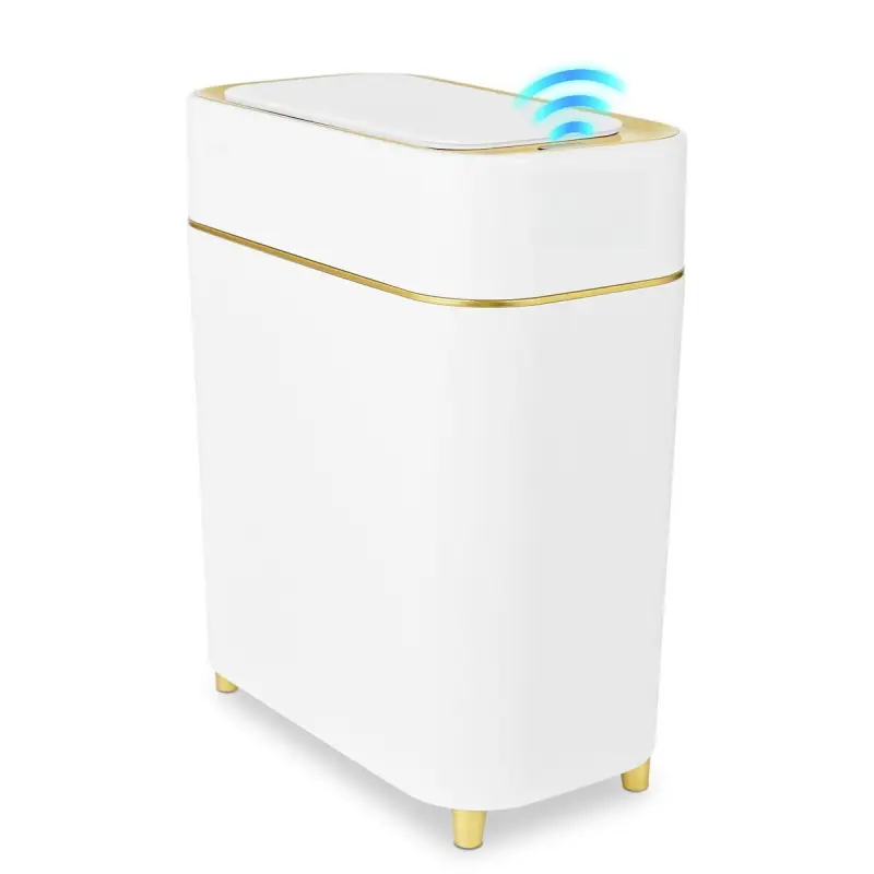 Auto-Sensor Trash Bin - Wave & Knee Induction Quick Voiceless Open Removable Liner Battery-Powered Motion Sensor Touchless Waterproof Durable Multipurpose Reusable Automatic Plastic White Gold