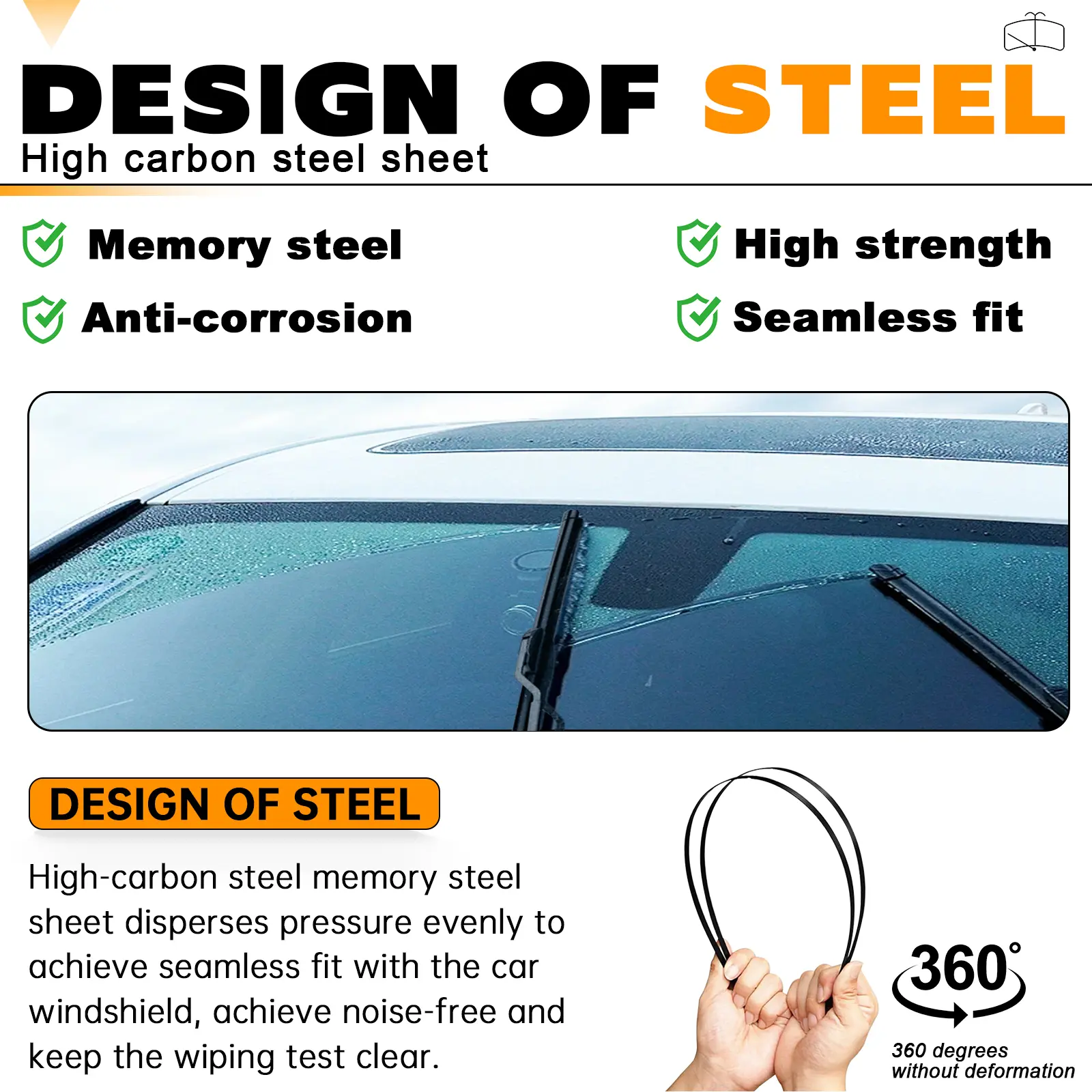 ·Achieve 0 Streak Wiping: Dual high-tenacity memory spring steel sheets deliver uniform pressure distribution and optimal windshield contact, preventing gaps during wiper operation