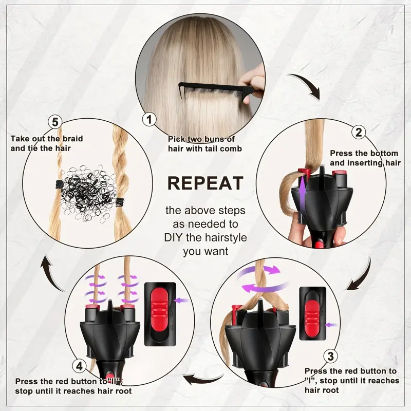 Automatic Braiding Tool! One-Click Operation, Easy to Make Twist Braids, Fishbone Braids, And More Styles. Even for Handicapped People. 30-Second Quick Braiding, Suitable for All Hair Types. Perfect Gift for Barbers And Stylists