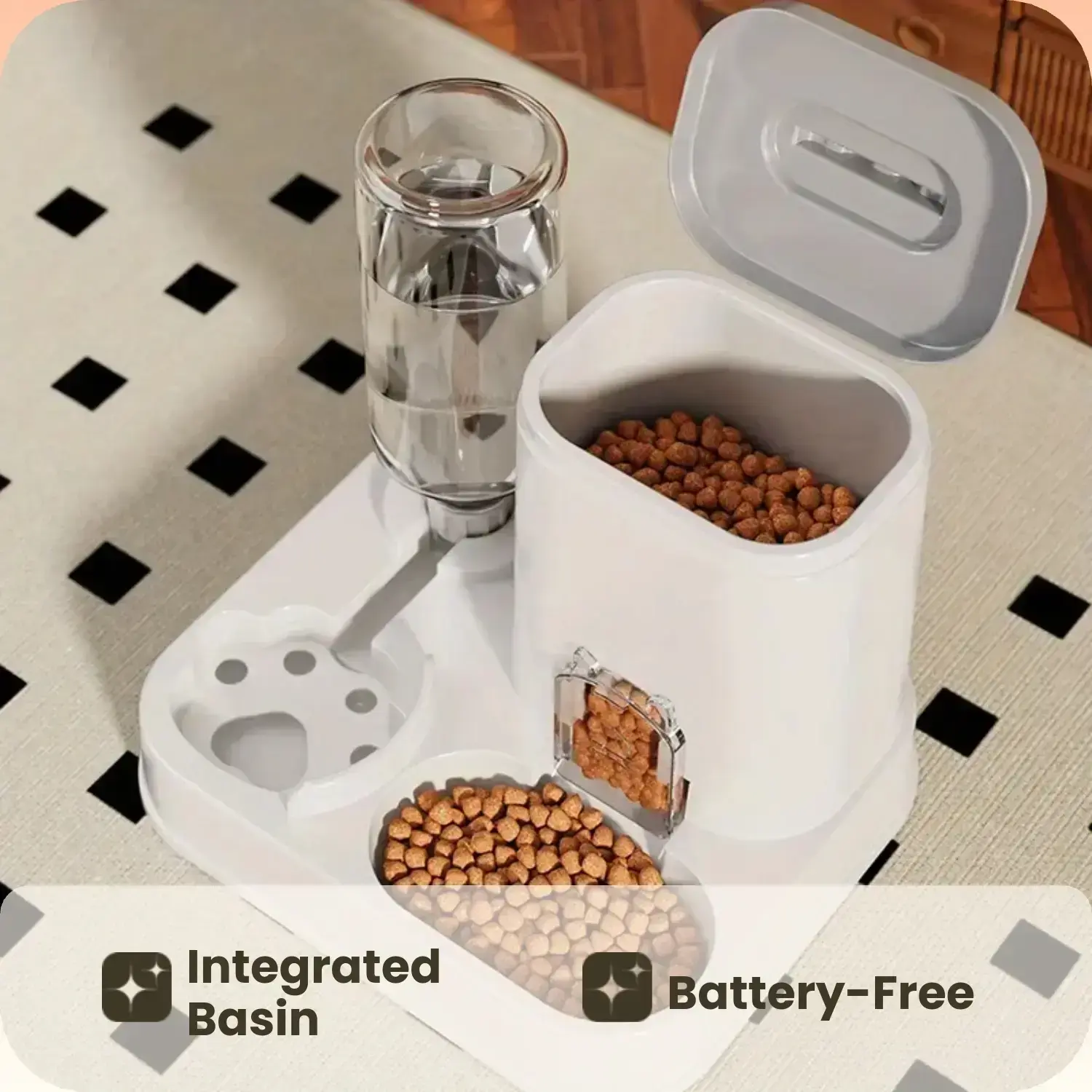 Automatic Cat & Dog Water Dispenser with Integrated Food Basin - 1-10L Capacity, No Batteries Needed, Modern White Design for Easy Cleaning & Hydration - Durable Pet Hydration Solution, Automatic Pet Feeder, Sleek Pet Accessory, Sturdy Construction