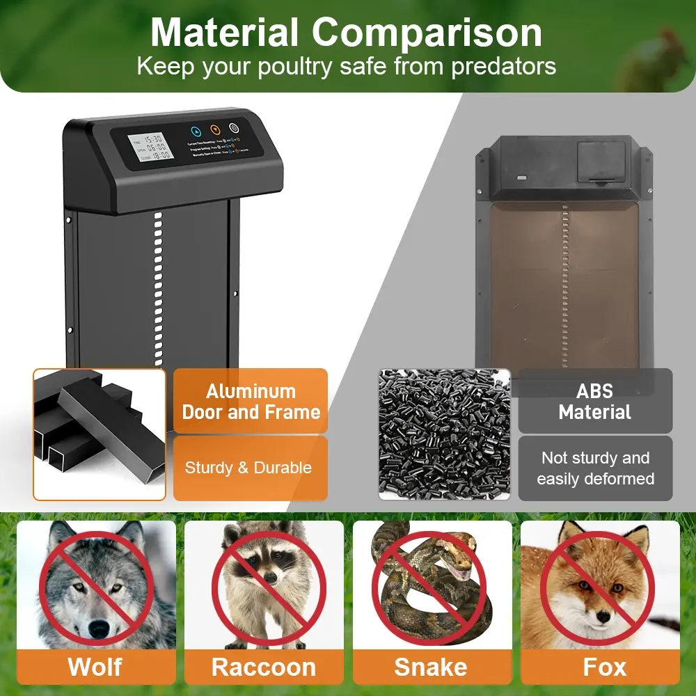 Automatic Chicken Coop Door Opener, Waterproof Aluminum Alloy Chicken Coop Door Opener with Timer & Sensor, Farm Animal & Poultry Supplies, Chicken Cage