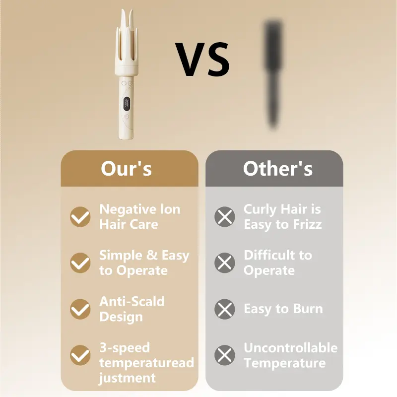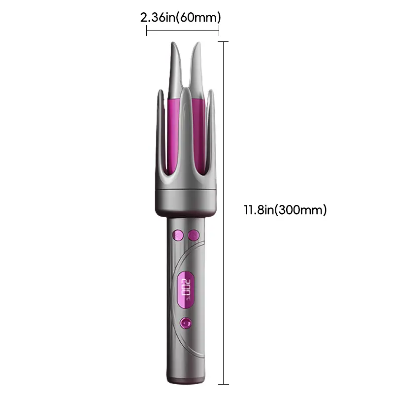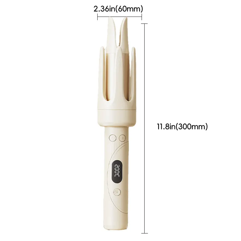 Our curling iron offers 4 temperatures (140°C to 200°C) for all hair types. It includes a two-way rotating function for versatile curls. Three timer settings (10, 15, and 20 seconds) cater to various occasions. Note: Not suitable for short hair.