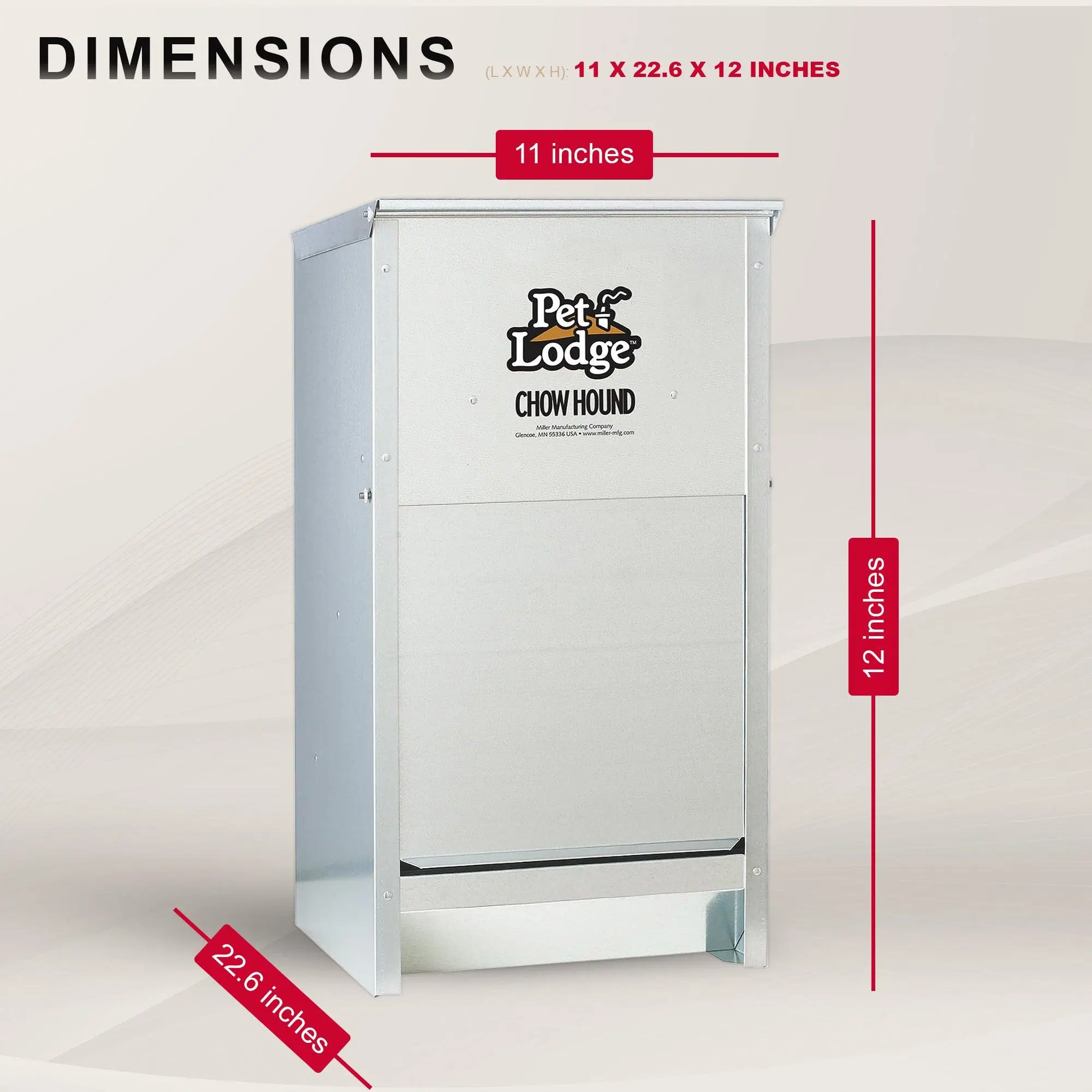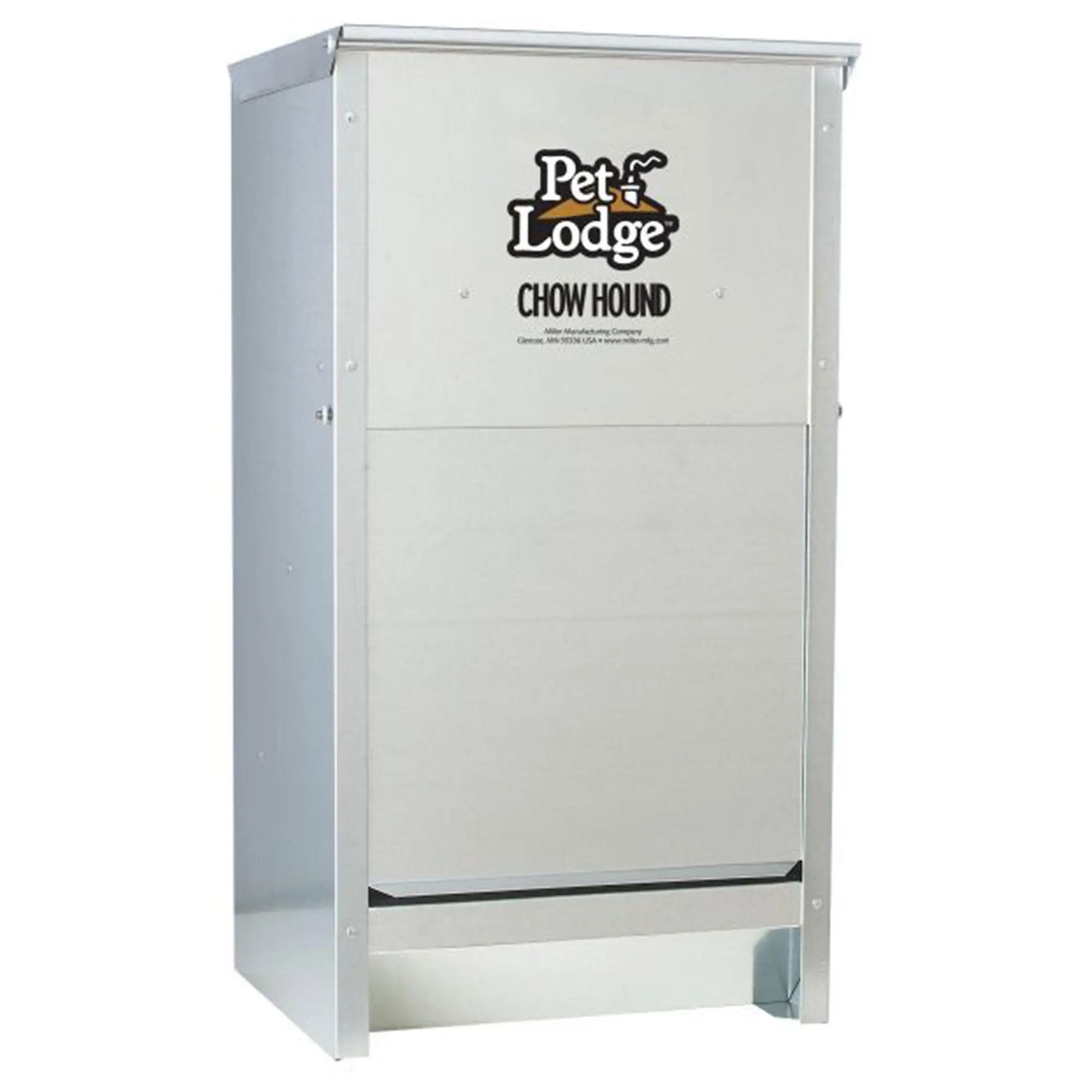 The Little Giant Automatic Dog Feeder Chow Hound offers a durable, chew-proof galvanized steel design to store and dispense dry dog food. With a magnetized door that opens when nudged, it keeps pests out while ensuring a steady food flow. Holds 25 lbs of food, keeps it fresh and dry, and can be wall-mounted. Perfect for indoor or outdoor use.