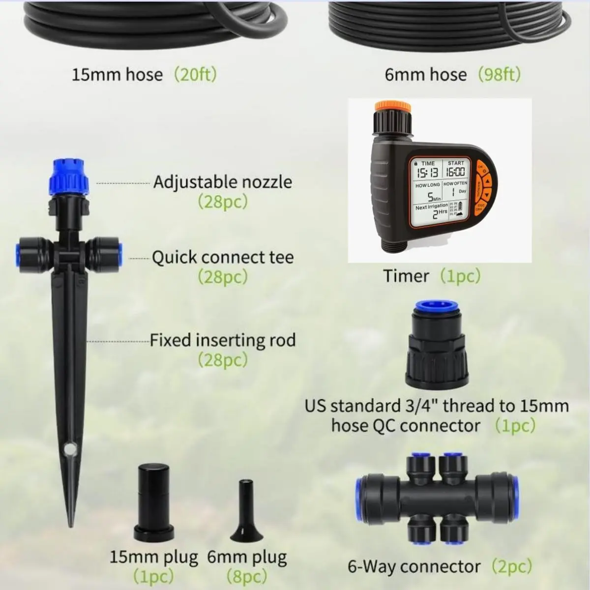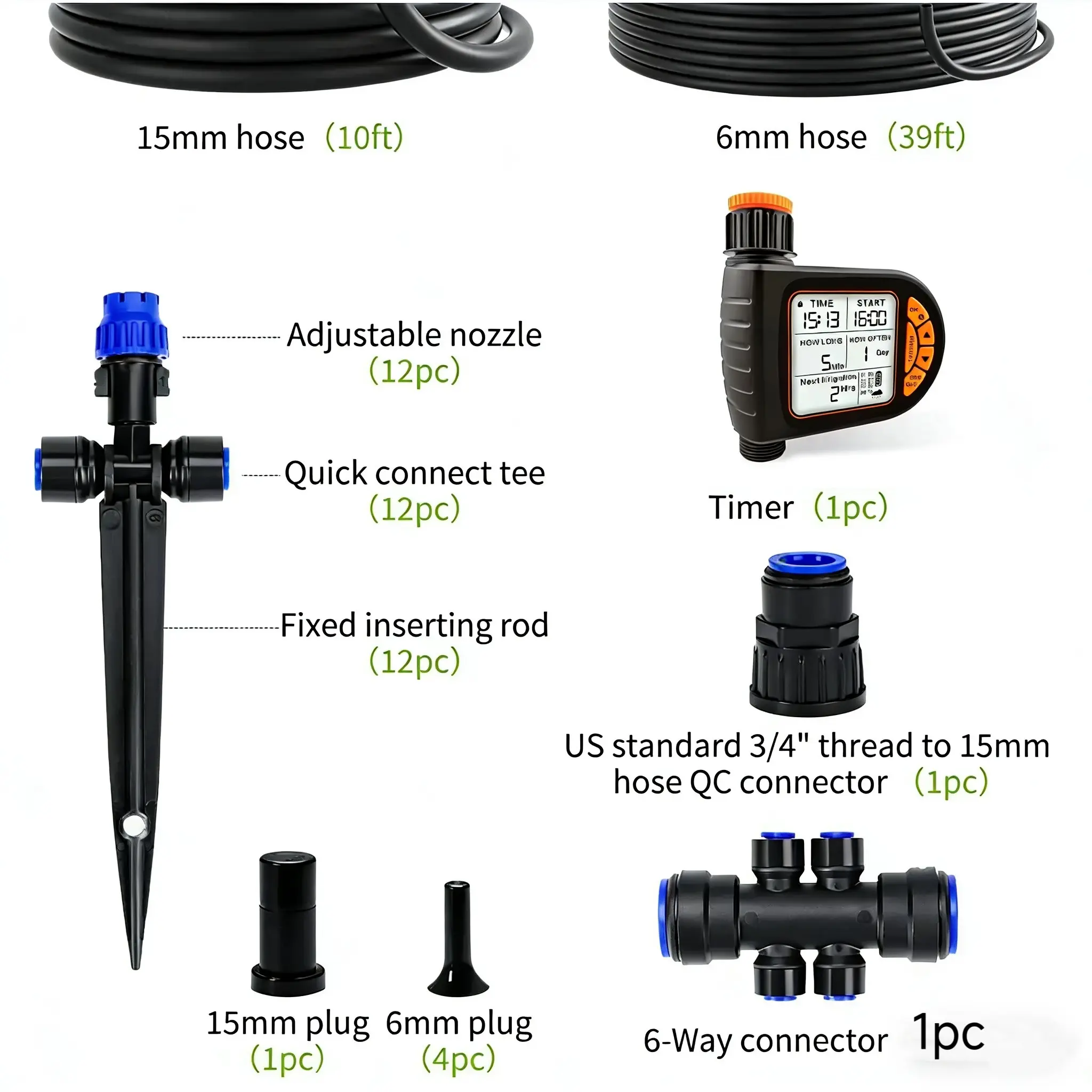 【Complete Kit】: Includes all necessary components for setting up an effective garden watering system.