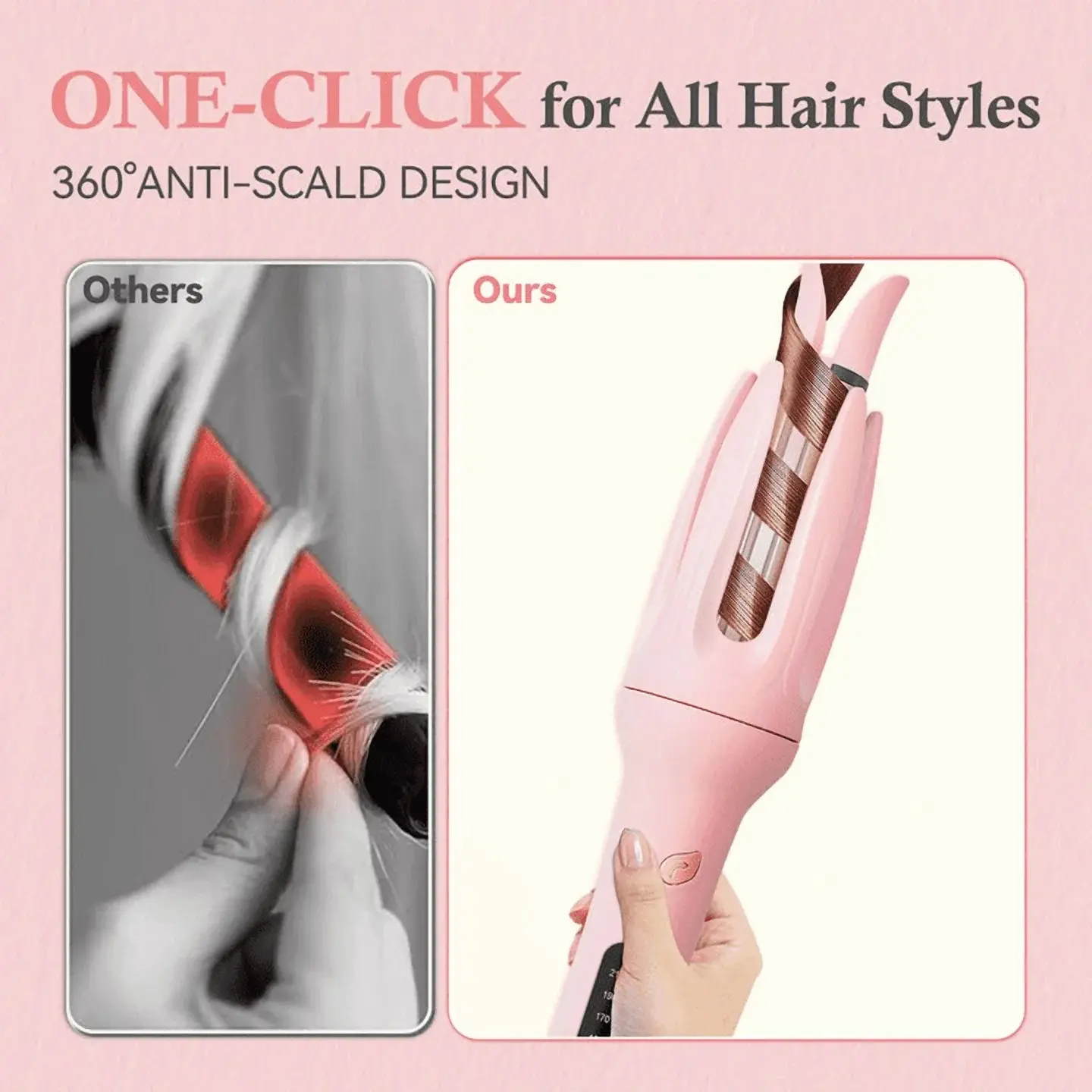 This curler is easy to use and you don’t get burned. I bought for my 9 yr old who can use it by herself. She did a good job curling her hair.