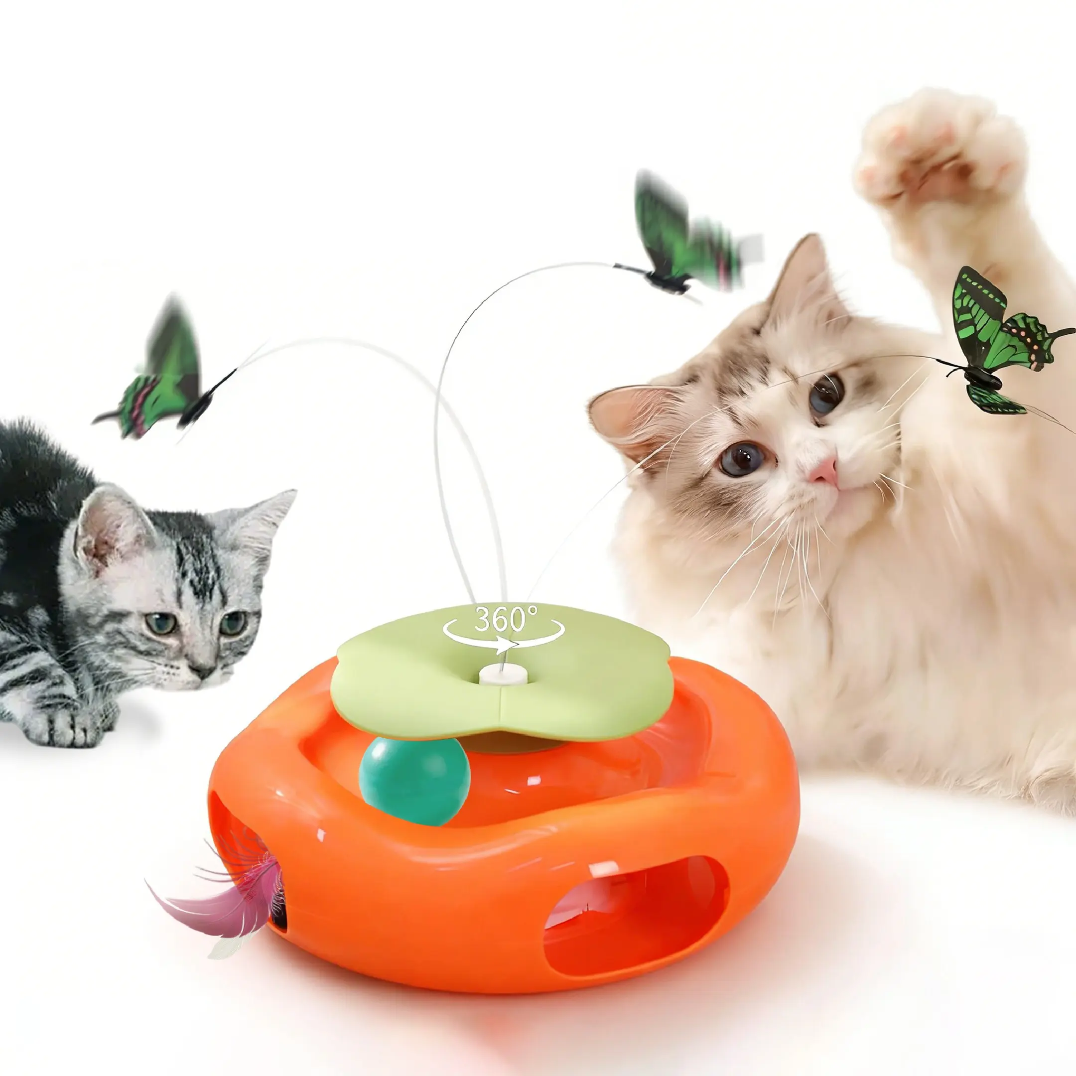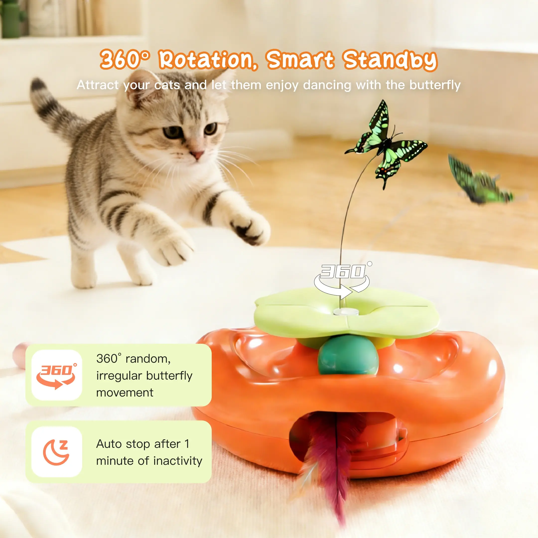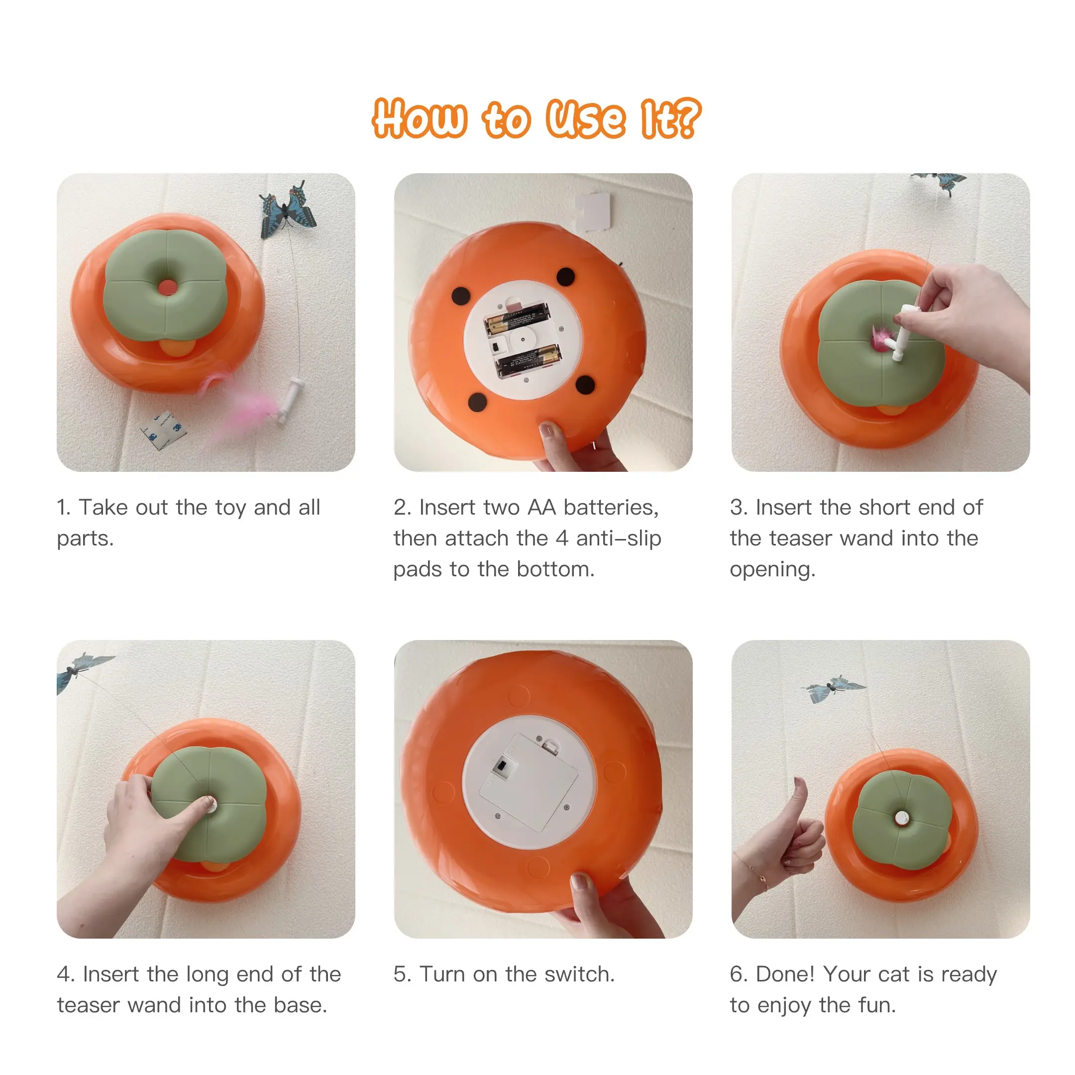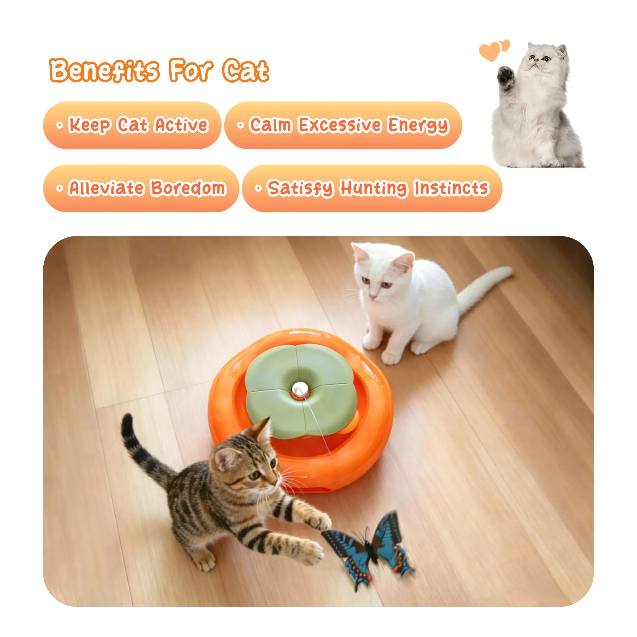 ·Design for fun:The cat toys for indoor cats can attract your kitten's attention.This butter-fly is constantly spinning, your cat can play with it when you are away.