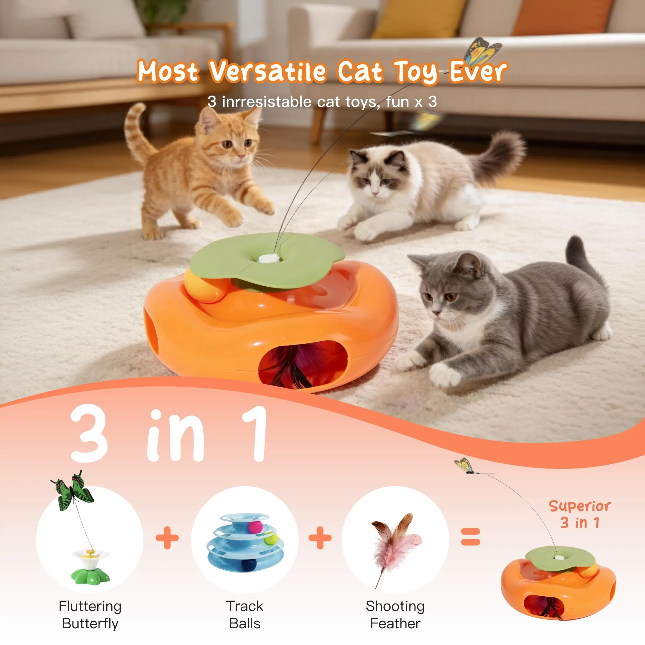 ·360 Degree Rotation:The flash butter-fly kitten toy can rotate in 360 degree,which will inspire the cat's nature to scratch and hunt.