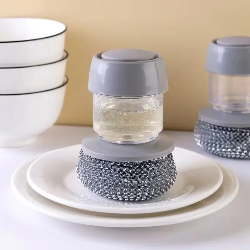 Automatic Liquid Soap Dispenser with Comfortable Handle, Hand Brush for Kitchen Sink Pot Bowl Cleaning, Easy-To-Use Dishwashing Tool