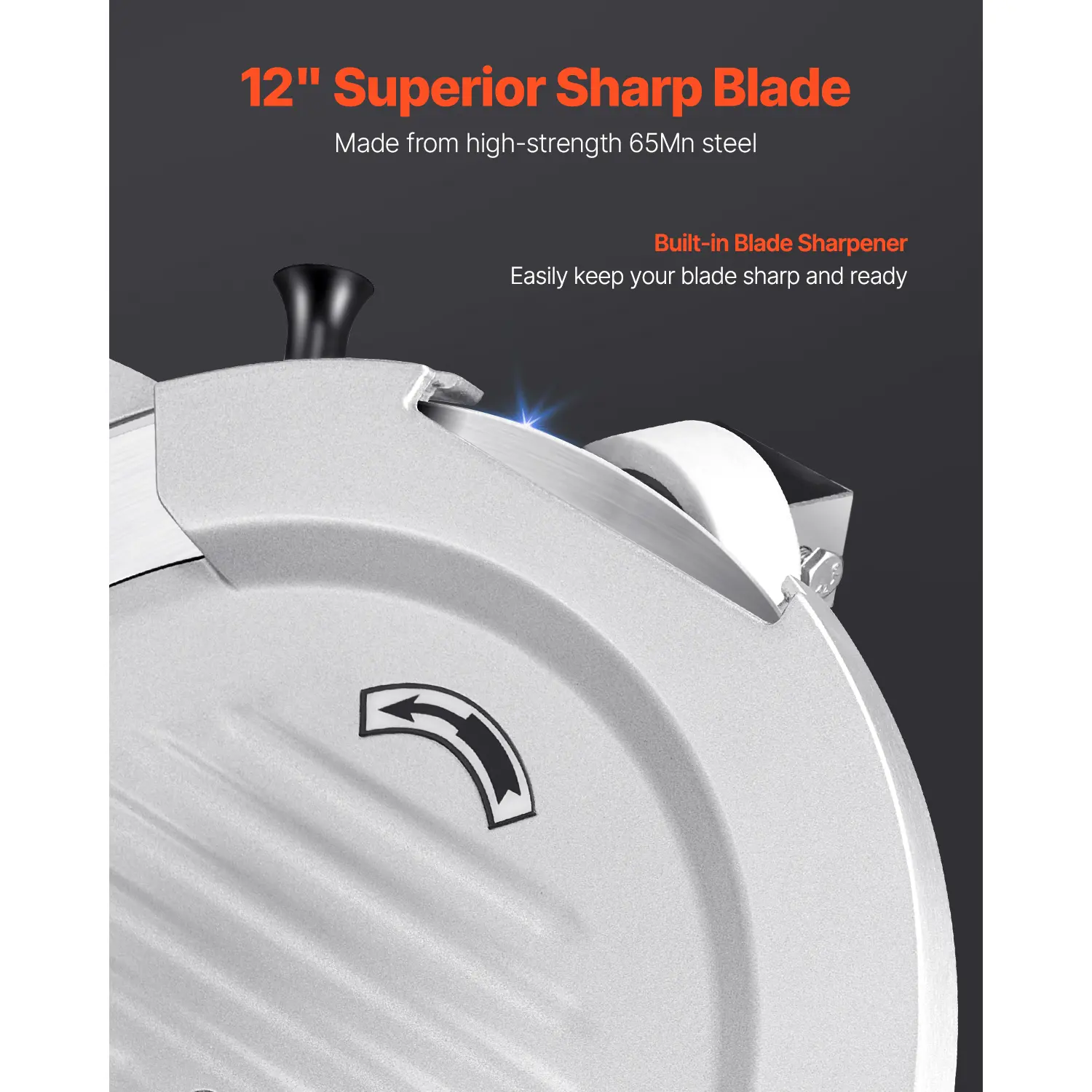 • Upgraded 12" Blade: Our electric meat slicer is equipped with an upgraded 12" wider blade, effortlessly handling various food textures such as frozen meat, cheese, and bread. You can keep it sharp with the built-in blade sharpener.