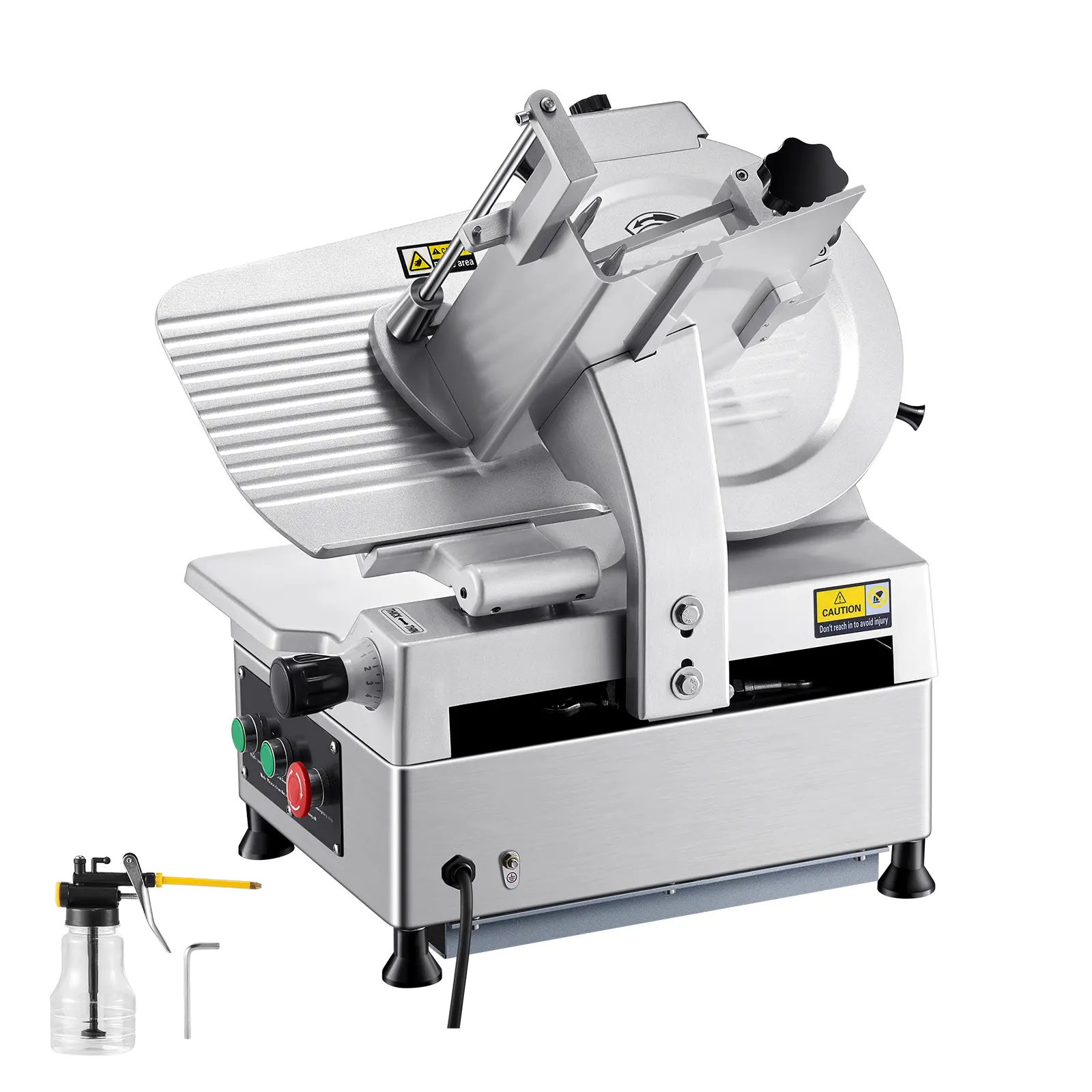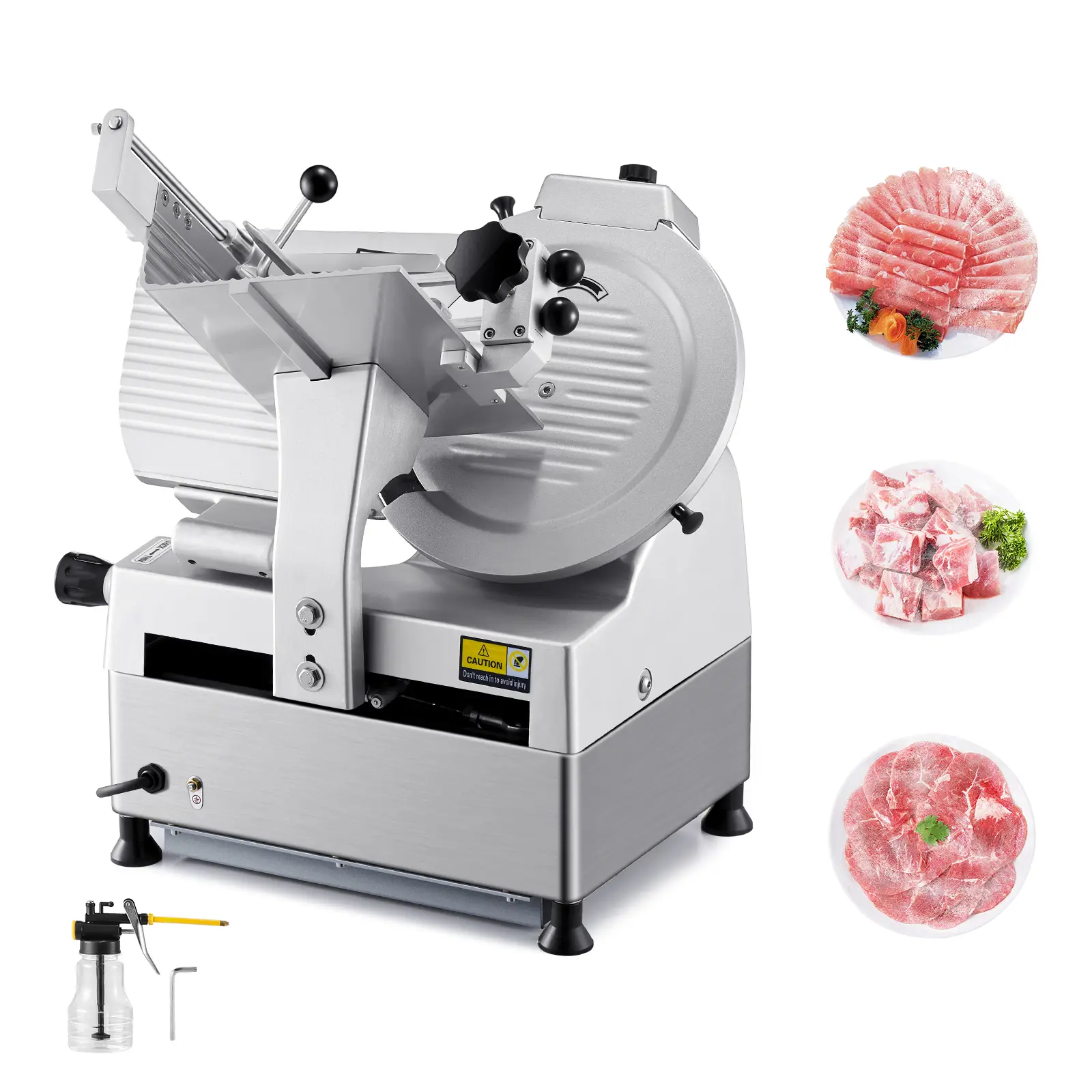 • Sturdy and Durable: Crafted from high-hardness carbon steel, our meat slicer machine is both robust and reliable. Additionally, it's easy to clean with a cloth after use, maintaining thoroughly clean and ready for your next meal prep.