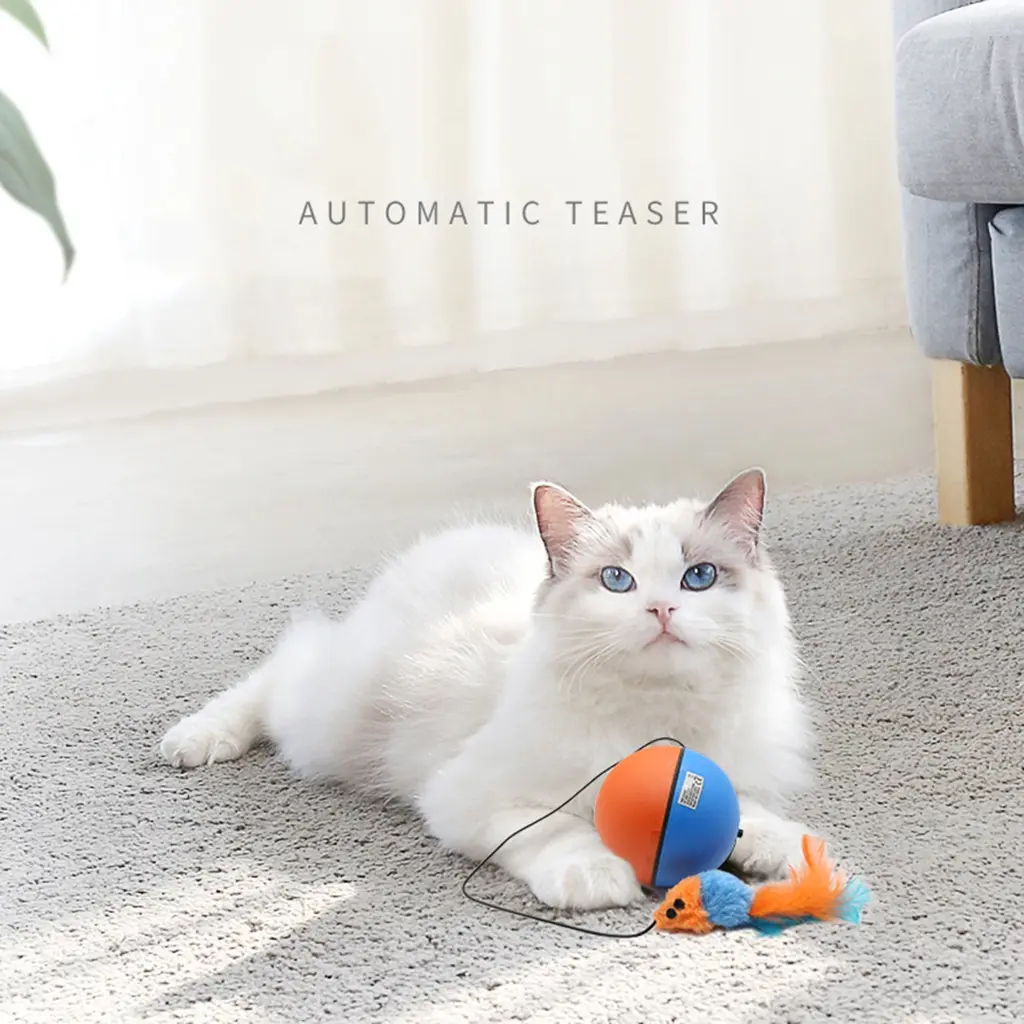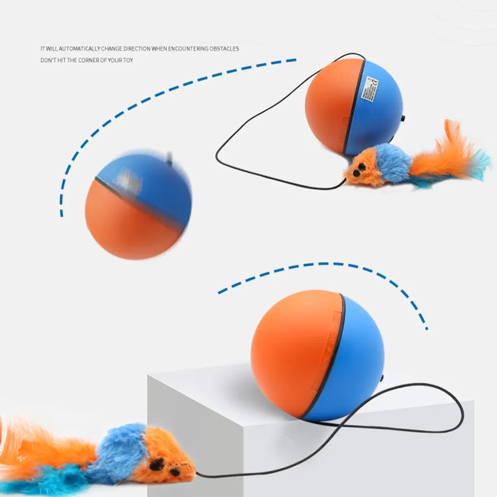 Anti-collision abs-resin wheels, effectively reduce noise,Anti-bite feather-rod, Kitten Ball Toy