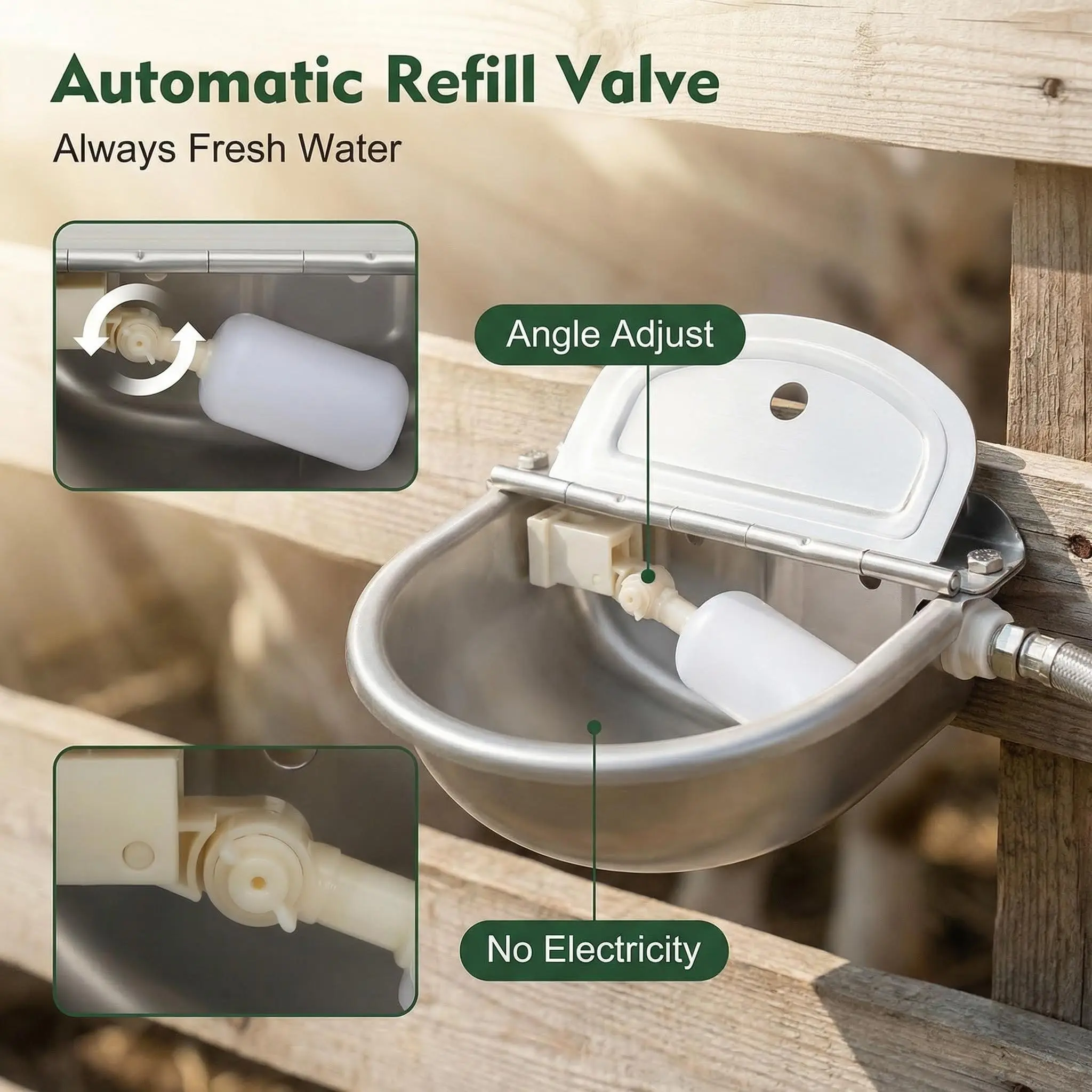 HOW IT WORKS: Simply connect to ANY 3/4 garden hose! The float valve inside AUTOMATICALLY keeps the water level full, No electricity, no noisy pumps, no more empty bowls!
